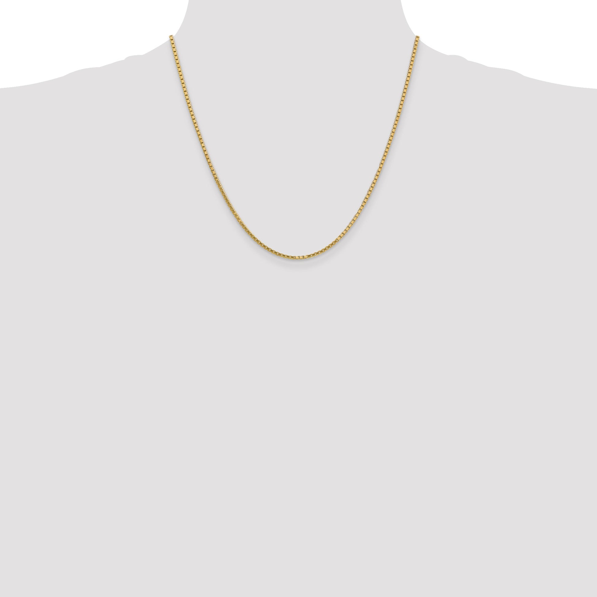 Experience timeless elegance with the 10k Yellow Gold 1.9mm Box Chain. Crafted from 10k gold, this polished 20-inch chain dazzles with its solid, die-struck design. The 1.9mm width adds a subtle yet refined touch, making this chain perfect for daily wear or special occasions. Its sturdy lobster clasp ensures a secure fit, while the classic box chain style offers both durability and sophistication. Elevate any outfit with the versatile beauty of the 10k Yellow Gold 1.9mm Box Chain.