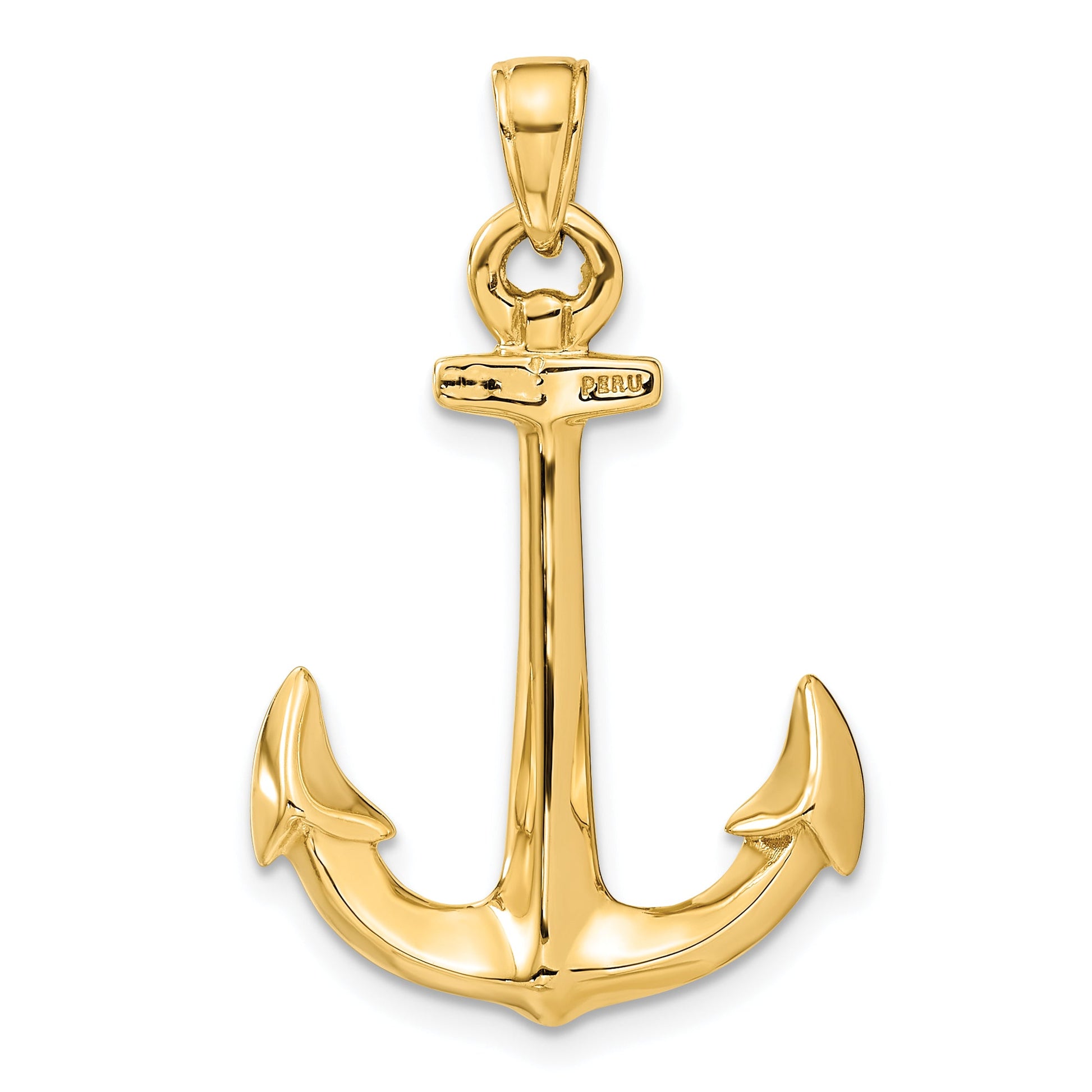 Set sail with style with our 10K Yellow Gold 3-D Anchor Pendant. Crafted from high-quality 10K yellow gold, this polished piece adds a touch of nautical elegance to any outfit. The anchor pendant measures 35 mm in length and 21 mm in width, featuring intricate 3D detailing that gives it depth and character. Its robust design ensures you can wear it daily without a hitch. The piece is cast for durability and has a bail width of 6 mm, making it suitable for any chain. The 10K Yellow Gold 3-D Anchor Pendant is a timeless charm that anchors your look with grace.