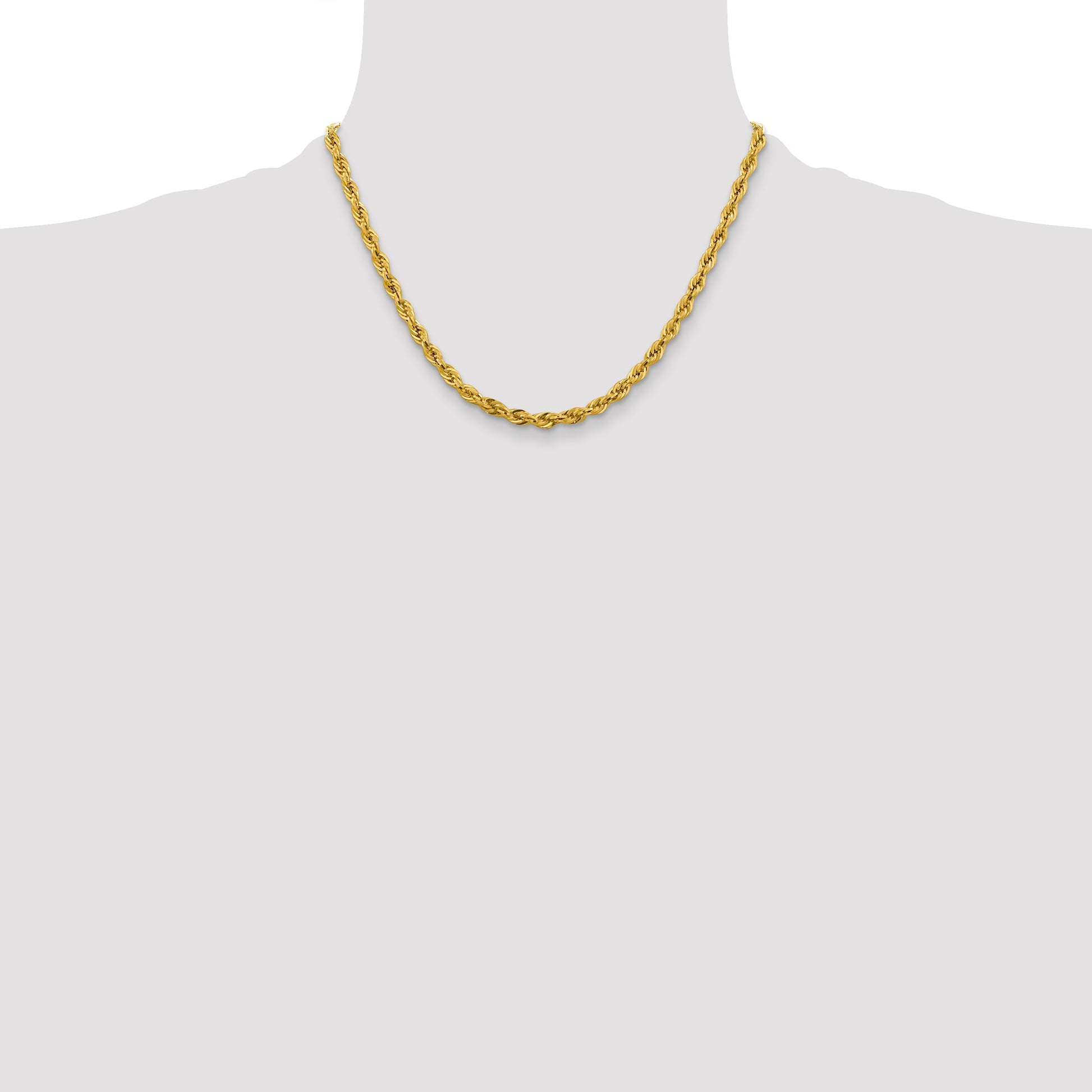 The 10k Yellow Gold 4.25mm Semi-Solid Rope Chain is a perfect piece to elevate your style. Crafted from polished 10k yellow gold, this chain exudes elegance and class. With an 18-inch length, it drapes gracefully around the neck. The 4.25mm width gives it a bold yet refined look, making it suitable for both everyday wear and special occasions. Featuring a secure lobster clasp, this necklace promises durability while keeping its semi-solid form. Add the 10k Yellow Gold 4.25mm Semi-Solid Rope Chain to your collection for a timeless and versatile accessory.