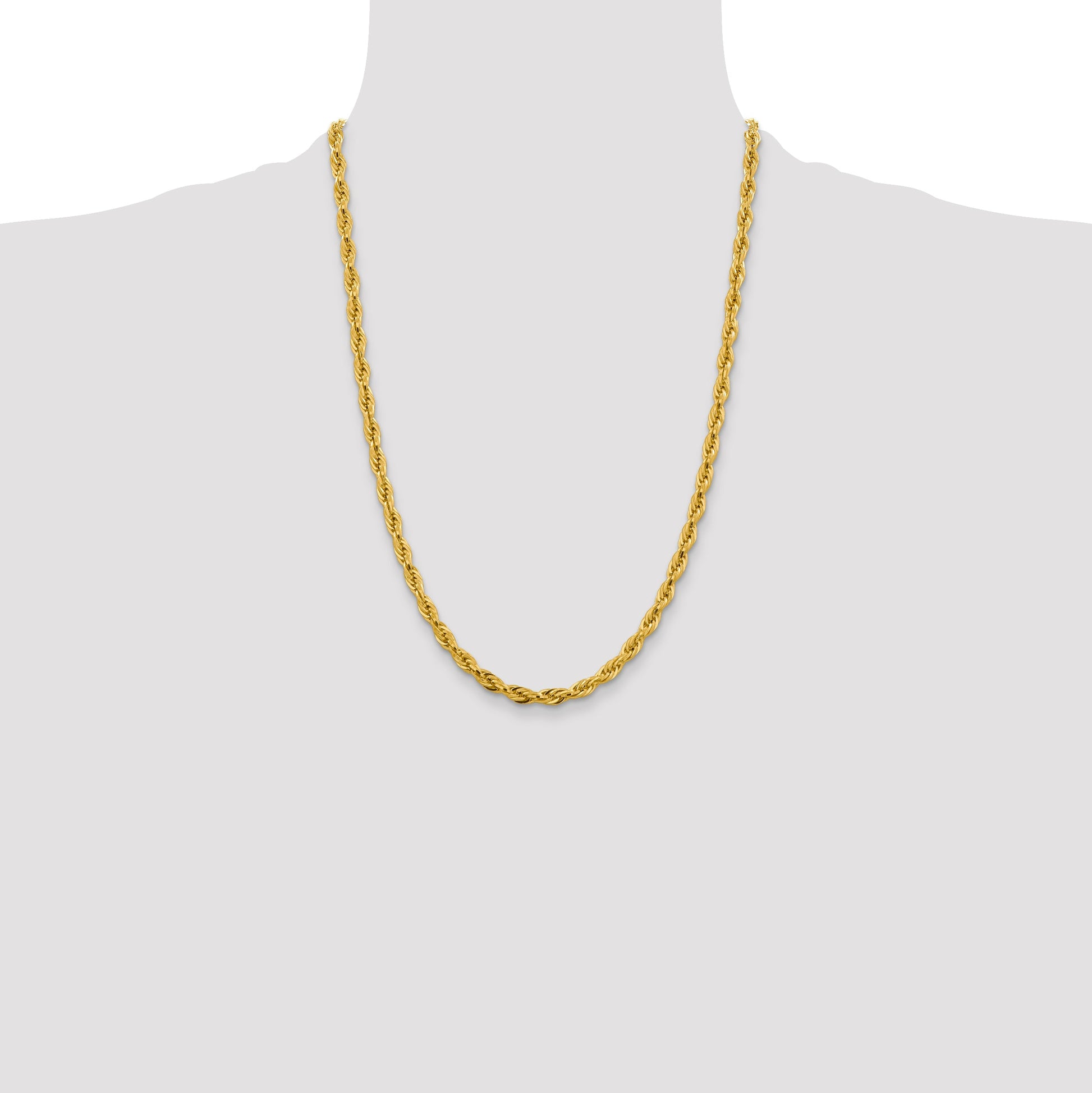 The 10k Yellow Gold 4.75mm Semi-Solid Rope Chain epitomizes timeless elegance and unmatched quality. Crafted from polished 10K yellow gold, this 24-inch chain radiates a warm, golden hue. The 4.75mm rope design adds a touch of sophistication, while its semi-solid structure offers a lightweight feel without compromising durability. Featuring a secure lobster clasp, you can wear this necklace with confidence. Perfect for both casual and formal wear, the 10k Yellow Gold 4.75mm Semi-Solid Rope Chain is a versatile addition to any jewelry collection.