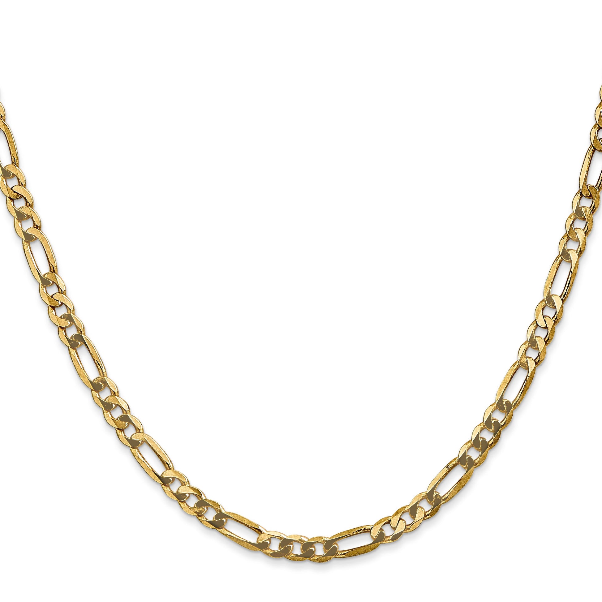 The 10K Yellow Gold 4mm Flat Figaro Chain drips with timeless elegance and style. This stunning necklace boasts a classic Figaro design, notable for its linked pattern, crafted from solid 10K gold. Its polished shine and sleek 4mm width add a touch of sophistication to any outfit, while the sturdy lobster clasp ensures a secure fit. With a 22-inch length, this unisex chain suits any occasion, making it a versatile addition to your jewelry collection. Embrace the allure of this exquisite 10K Yellow Gold 4mm Flat Figaro Chain.