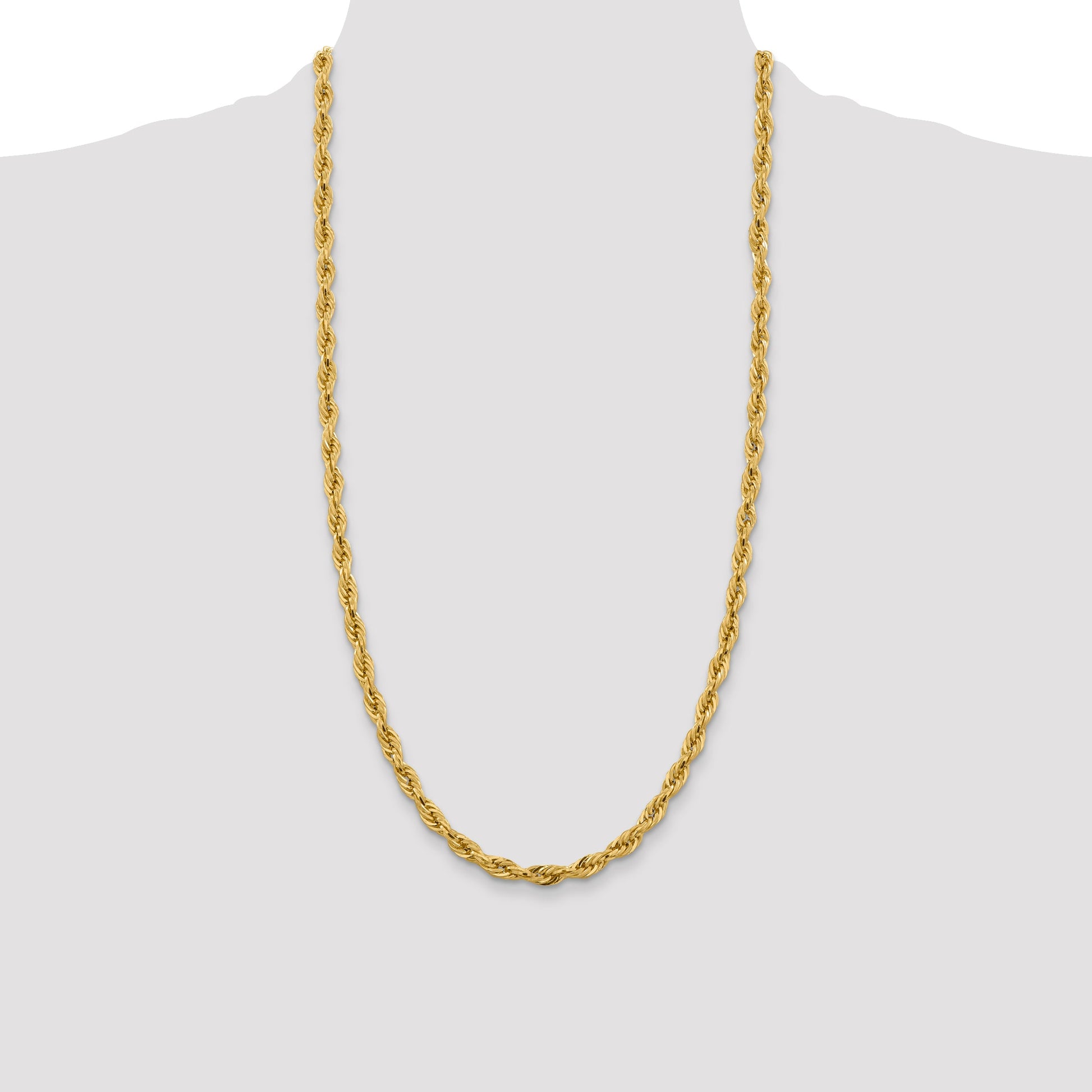 The 10k Yellow Gold 10k 5.4mm Semi-Solid Rope Chain exudes timeless elegance. Crafted from polished 10K yellow gold, this chain features a sleek 28-inch length that adds sophistication. Its semi-solid rope design, measuring 5.4mm wide, ensures durability without compromising on style. The secure lobster clasp ensures a perfect fit for any occasion. Wear it solo for a classic look or pair it with a pendant for added charm. Elevate your jewelry collection with this stunning 10k Yellow Gold 10k 5.4mm Semi-Solid Rope Chain.