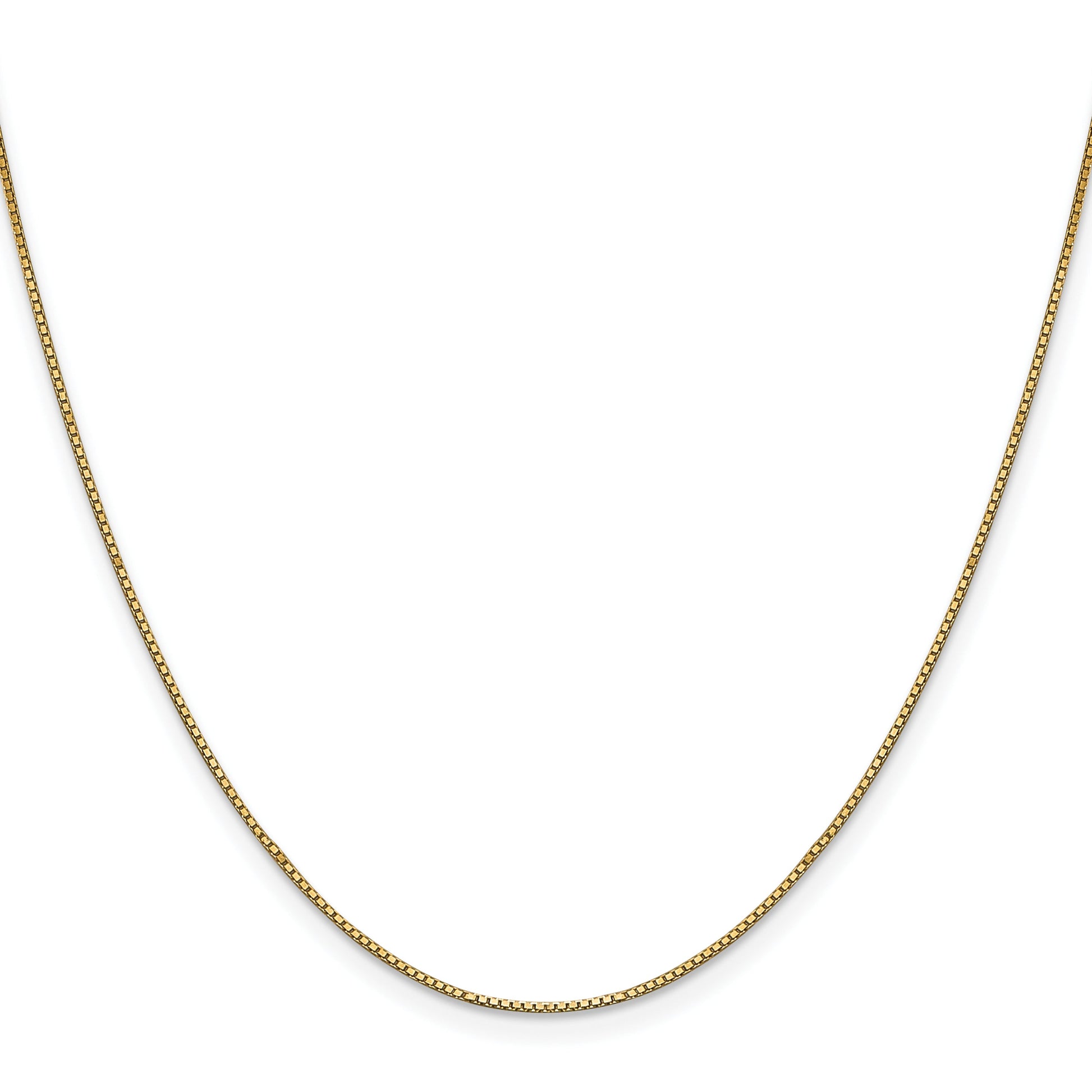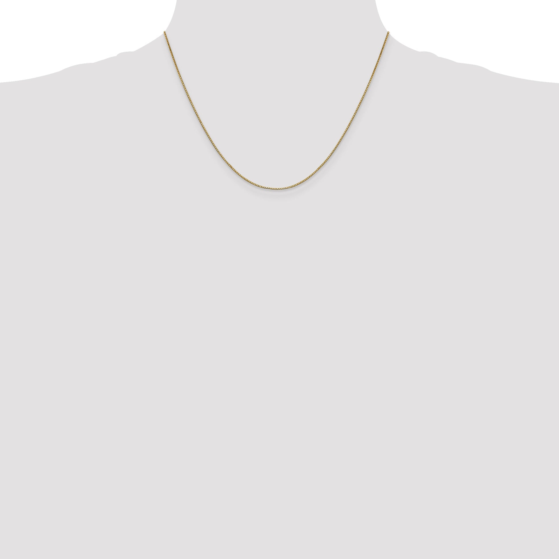 Discover elegance with our 10k Yellow Gold .90mm Box Chain. Crafted from solid 10k gold, this polished chain boasts an 18-inch length, ideal for any neckline. The box chain design ensures durability without sacrificing style, measuring a delicate 0.9mm in width. A secure lobster clasp makes it easy to wear and remove. This exquisite piece shines bright, thanks to a meticulous extruded and die-struck manufacturing process. Elevate your jewelry collection with the timeless simplicity of our 10k Yellow Gold .90mm Box Chain.