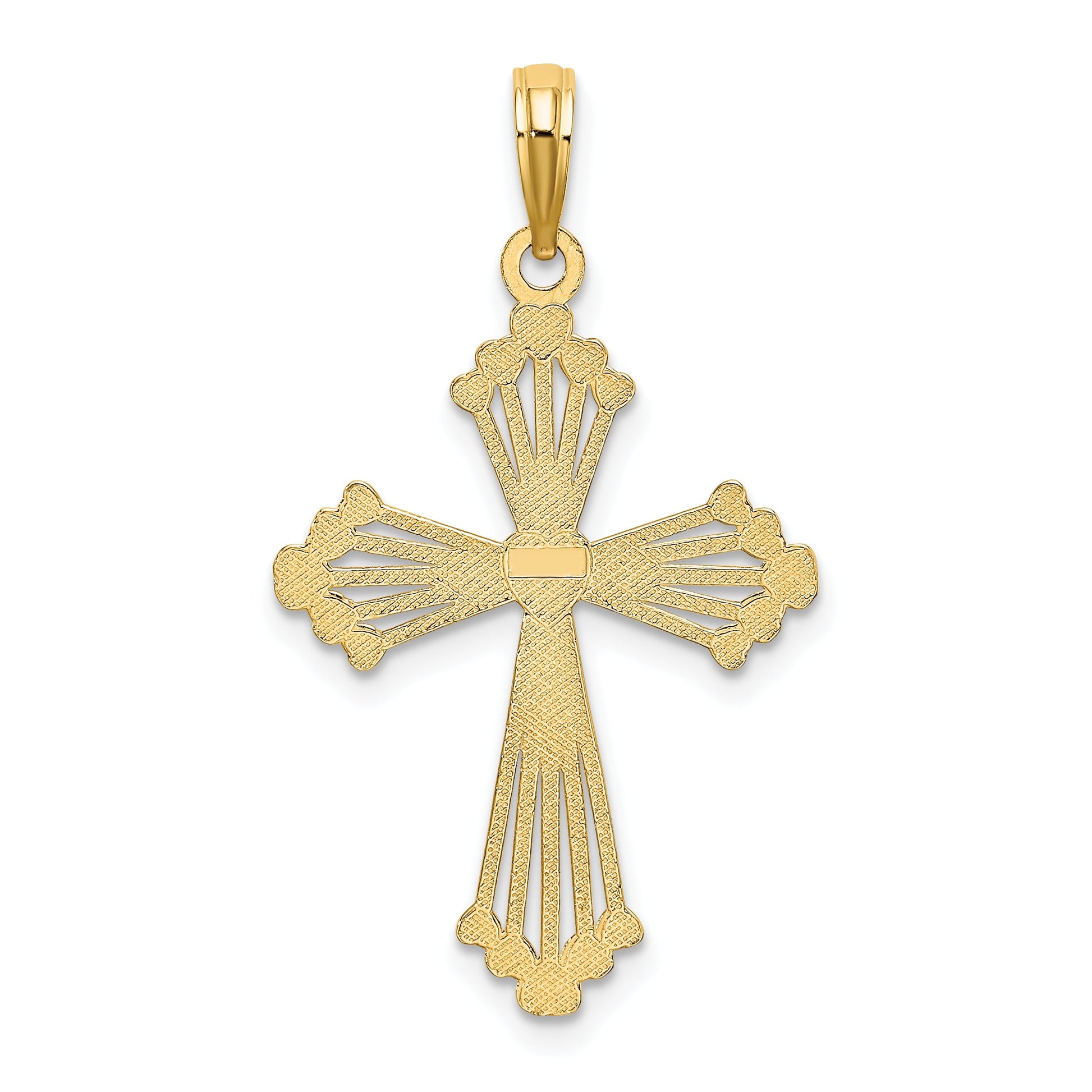 The 10K Yellow Gold Cross with Heart Center Charm is perfect for adding a touch of elegance to your jewelry collection. This exquisite piece showcases a divine blend of faith and love with its unique design. Crafted in polished 10K yellow gold, this charm measures 25mm in length and 20.03mm in width. The solid structure ensures lasting durability. The cross design features a heartfelt centerpiece, creating a timeless symbol of devotion. This charm's excellence is further highlighted by its meticulous casted manufacturing process. Adorn your look with this stunning 10K Yellow Gold Cross with Heart Center Charm.