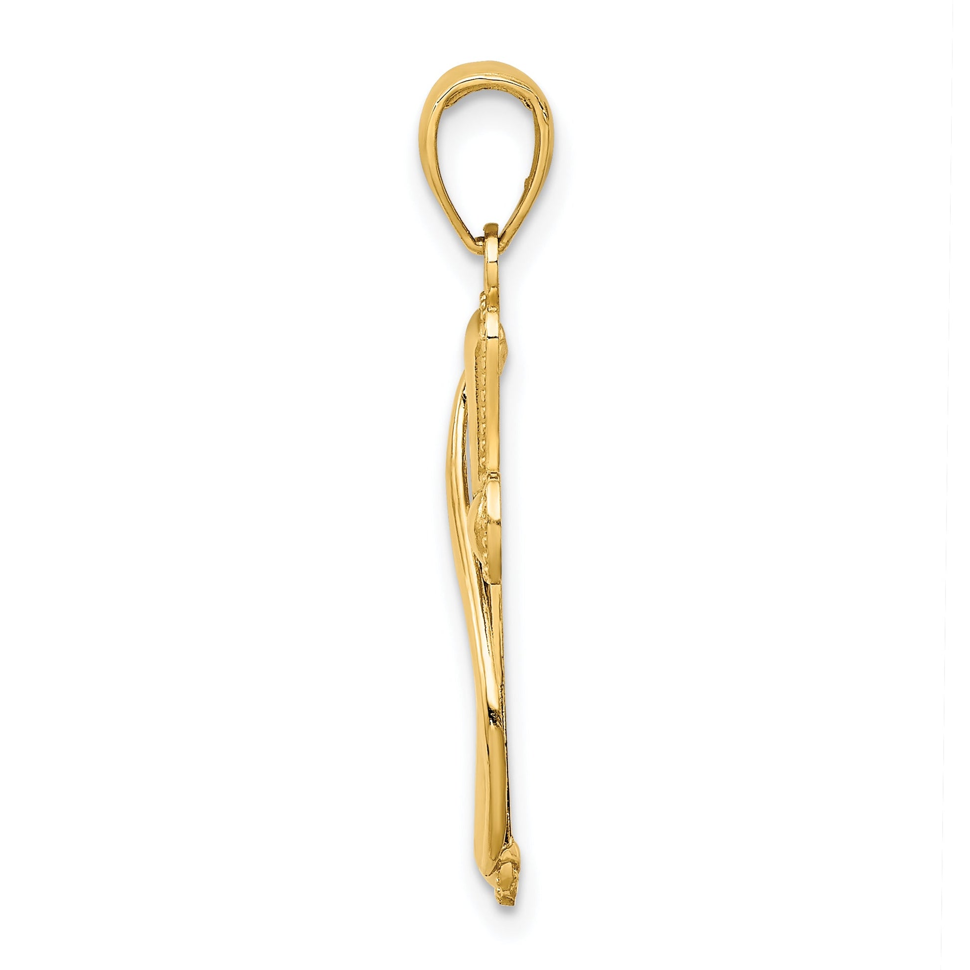 Introducing the exquisite 10K Yellow Gold Cross with Drape Charm, a stunning piece designed to elevate any jewelry collection. Crafted from genuine 10K yellow gold, this polished charm boasts a solid structure, showcasing both strength and elegance. The detailed design features a cross with an artful drape, adding a touch of classic style. Its dimensions—27.1 mm in length and 22.1 mm for the charm—make it a perfect pendant. The bail, measuring 4.5 mm wide and 5 mm long, ensures easy pairing with various chains. The 10K Yellow Gold Cross with Drape Charm embodies timeless grace in every detail.