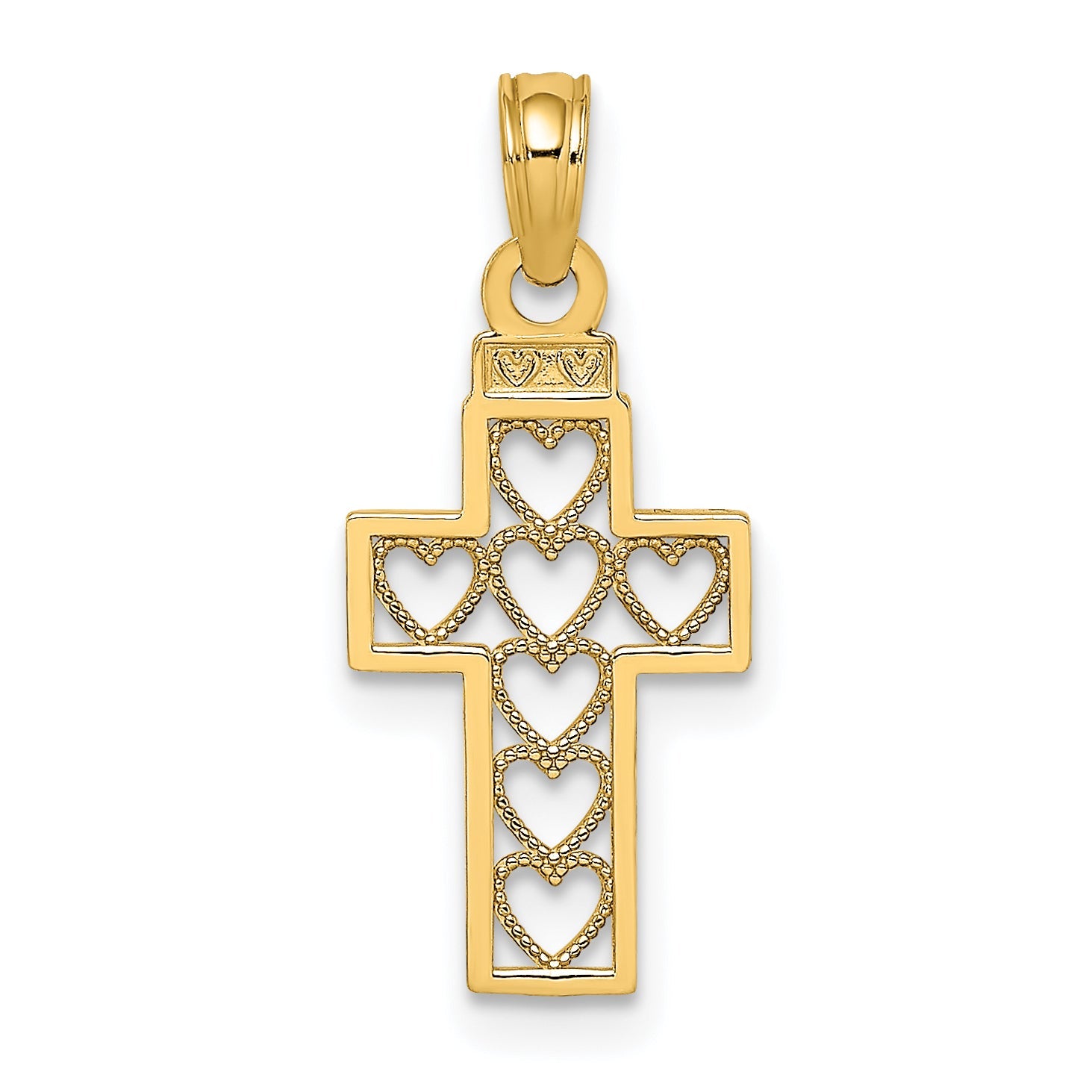 The 10K Yellow Gold Cut-Out Heart Design Cross Charm brings a touch of elegance to your daily style. Crafted from high-quality 10K gold, this pendant shines with its polished finish. Measuring 20.7 mm in length and 9 mm in width, it features a solid structure that offers durability. The unique heart-shaped cut-out adds a romantic and meaningful touch, making it perfect for gifting. The charm is casted with precision to ensure a lasting shine and brilliance. Elevate your jewelry collection with this stunning 10K Yellow Gold Cut-Out Heart Design Cross Charm today.