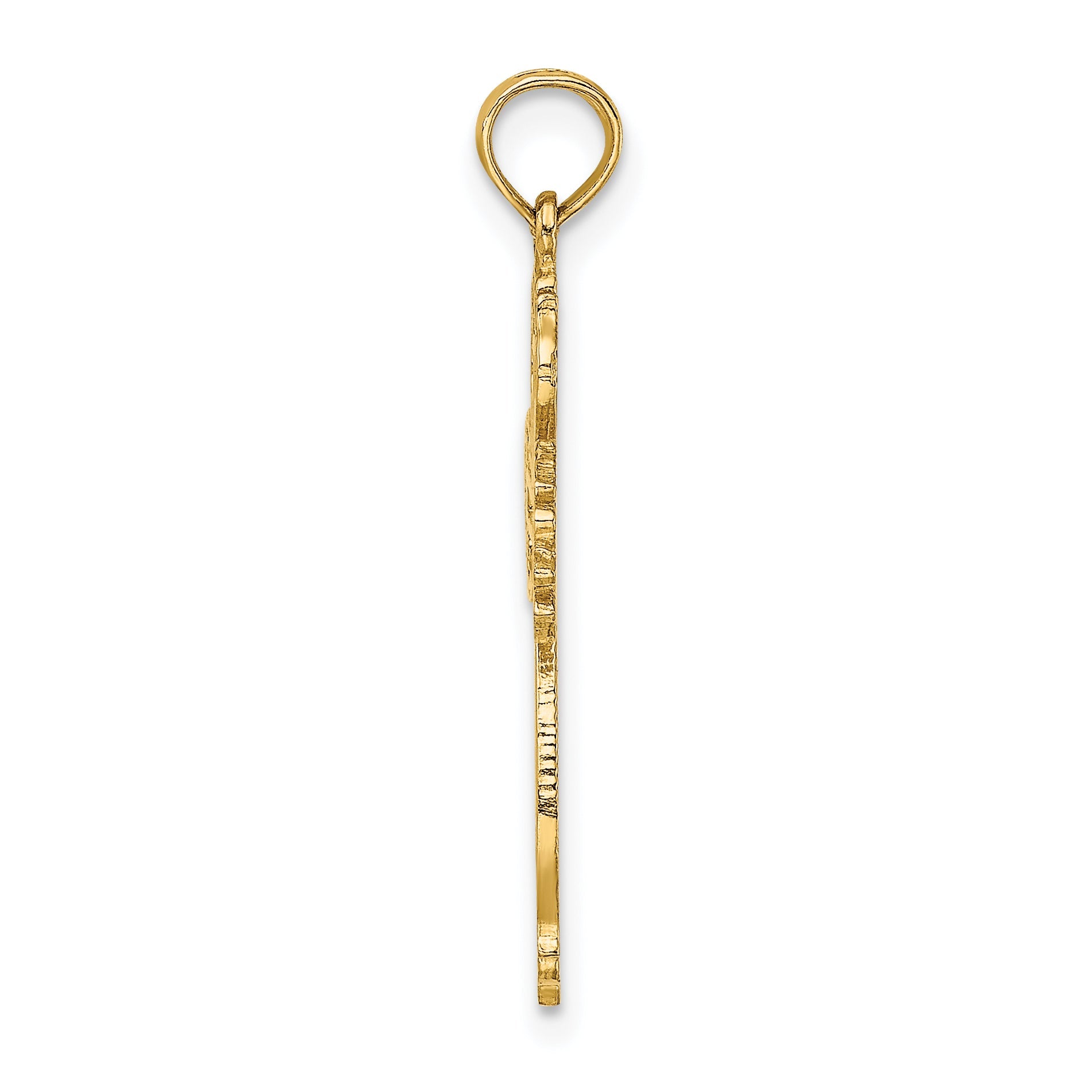 Discover divine elegance with the 10K Yellow Gold 10K Cut-Out Scroll Framed Cross Charm. This polished charm radiates grace with its intricate scrollwork design. Its compact 27.3 mm length and 15 mm width make it the perfect accessory for any occasion. Made from solid 10K yellow gold, its craftsmanship ensures lasting quality. A 4.5 mm wide bail allows it to dangle beautifully from your favorite chain. Embrace its timeless appeal and let the 10K Yellow Gold 10K Cut-Out Scroll Framed Cross Charm enhance your collection with its classic style and charm.