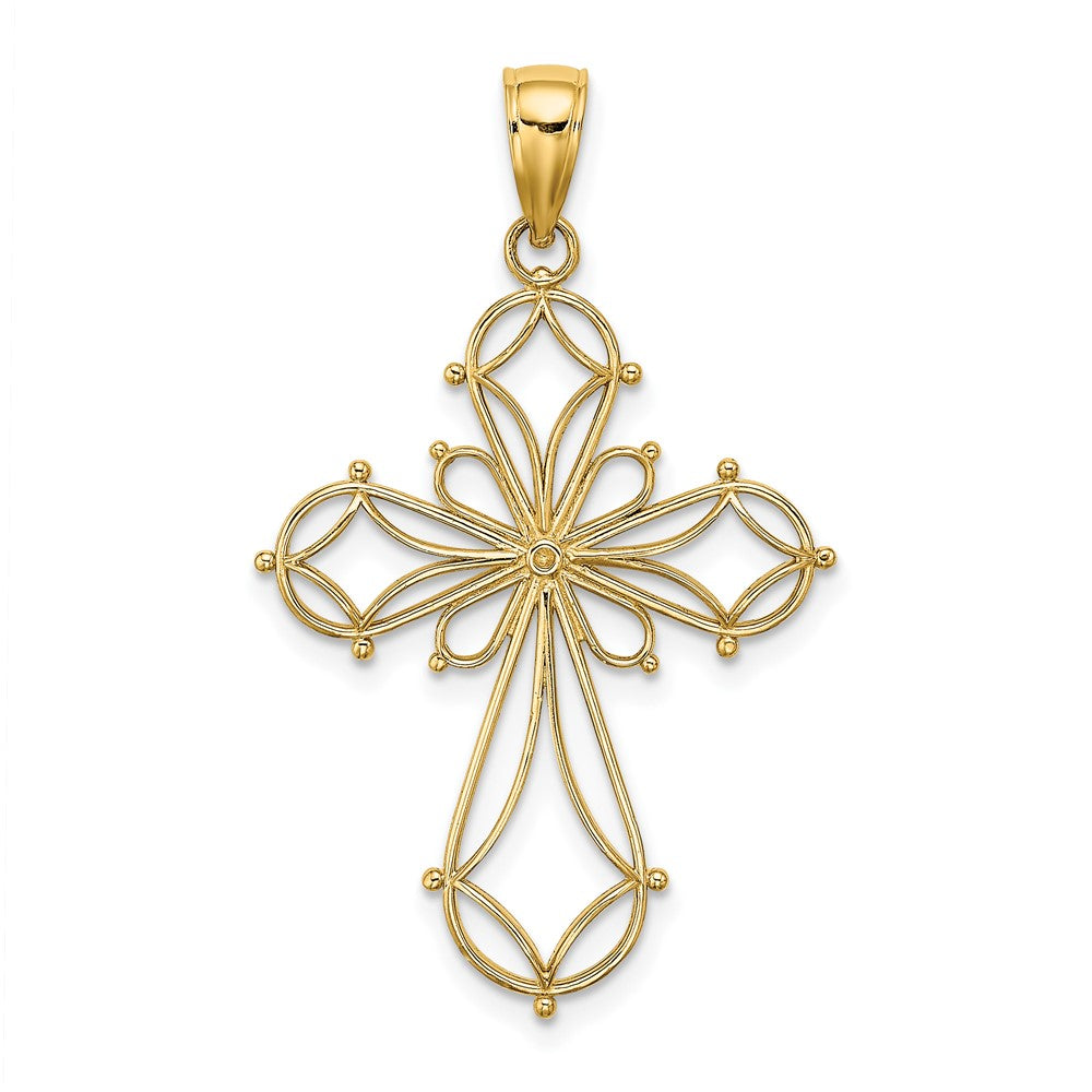 Discover the grace of the 10K Yellow Gold Cut-Out Shapes Fancy Cross Charm. Made from genuine 10K gold, this charm shines with a polished finish. Its allure comes from the intricate cut-out shapes and solid build, offering both durability and elegance. Measuring 29 mm in length and 23.27 mm in width, it’s perfect as a statement piece or sentimental treasure. The bail adds versatility, fitting a variety of chains with its 5 mm width and 7 mm length. Elevate your jewelry collection with this exquisite 10K Yellow Gold Cut-Out Shapes Fancy Cross Charm.
