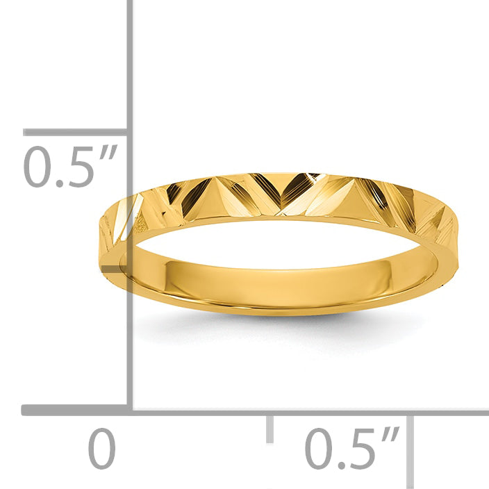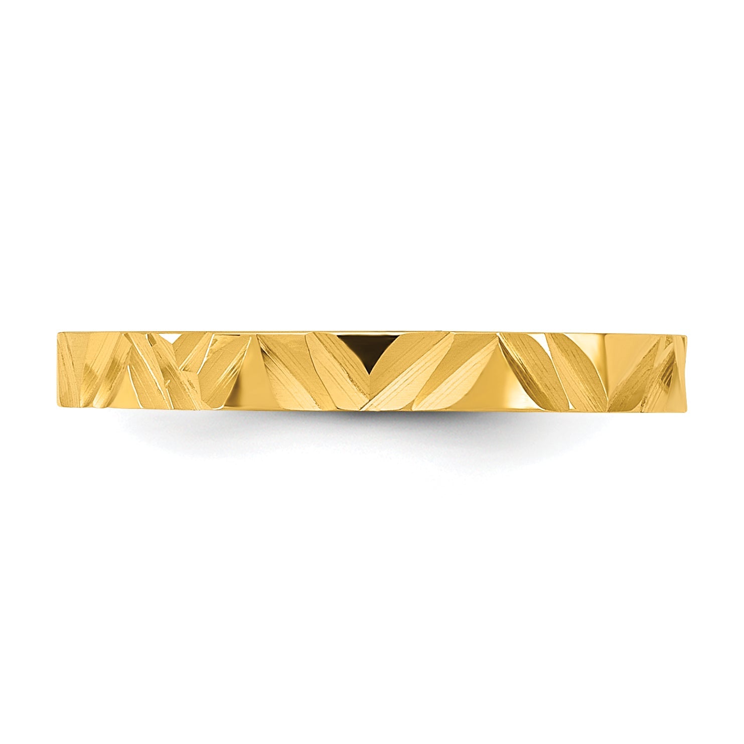 The 10K Yellow Gold Diamond-Cut Zig-Zag Band is a charming addition to your little one's jewelry collection. Crafted with 10K gold, this baby ring features a unique diamond-cut zig-zag design that sparkles beautifully. The polished finish adds a touch of elegance, while the 2mm flat band ensures a comfortable fit for tiny fingers. With a profile type that's flat and a width of 16.2mm, this ring is both stylish and wearable. Perfect for any baby's special occasion, the 10K Yellow Gold Zig-Zag Band is a lovely gift for a precious child.