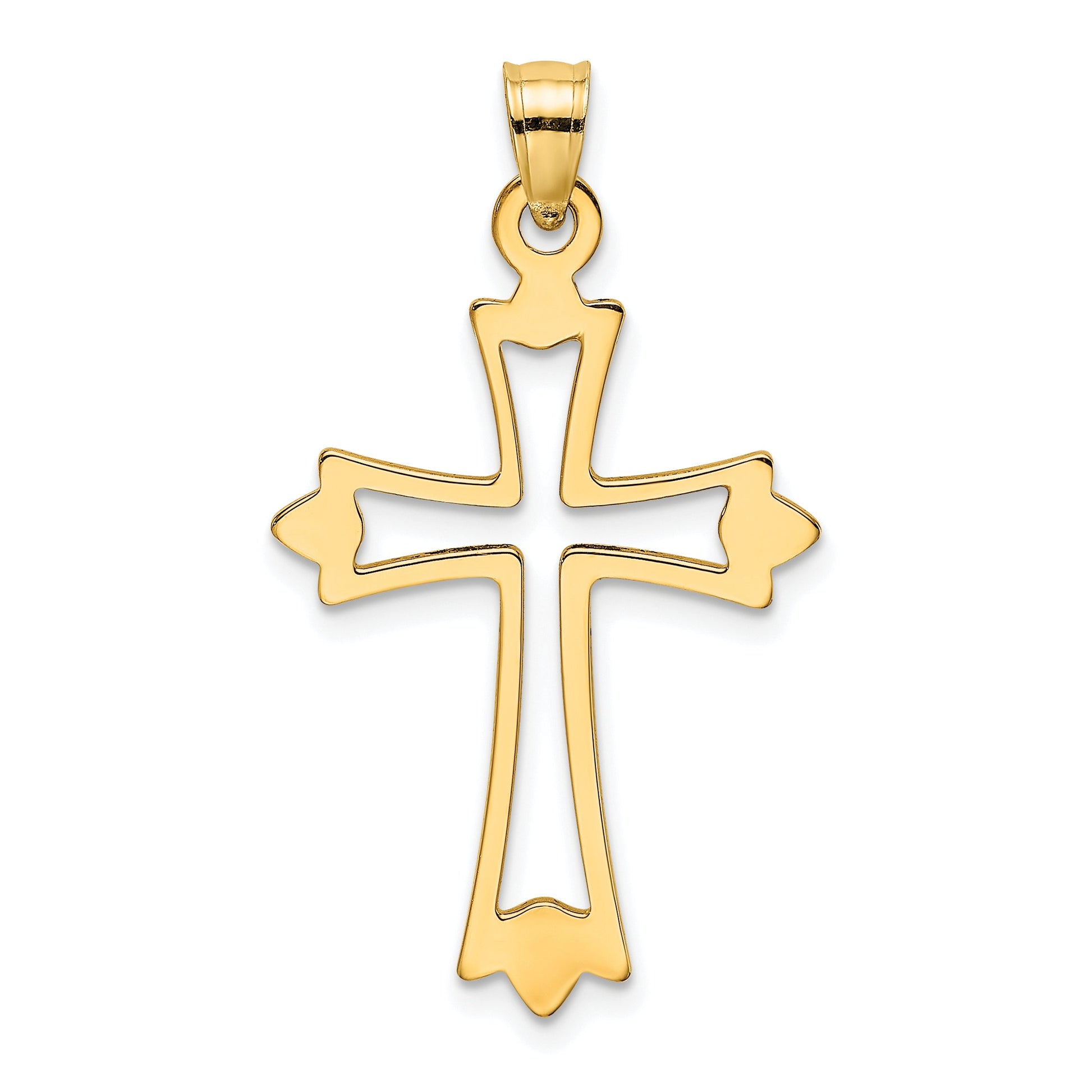 Introducing the 10K Yellow Gold Polished and Cut-Out Cross Charm, a perfect blend of faith and elegance. This charm shows a polished finish and features a striking cut-out design. Measuring 24.5 mm in length and 18.9 mm in width, it is crafted from 10K solid gold, casting a warm yellow hue that captures the light beautifully. Its simplicity makes it a versatile piece to pair with any outfit, enhancing your style effortlessly. Whether for personal wear or as a thoughtful gift, the 10K Yellow Gold Polished and Cut-Out Cross Charm is an exquisite choice.