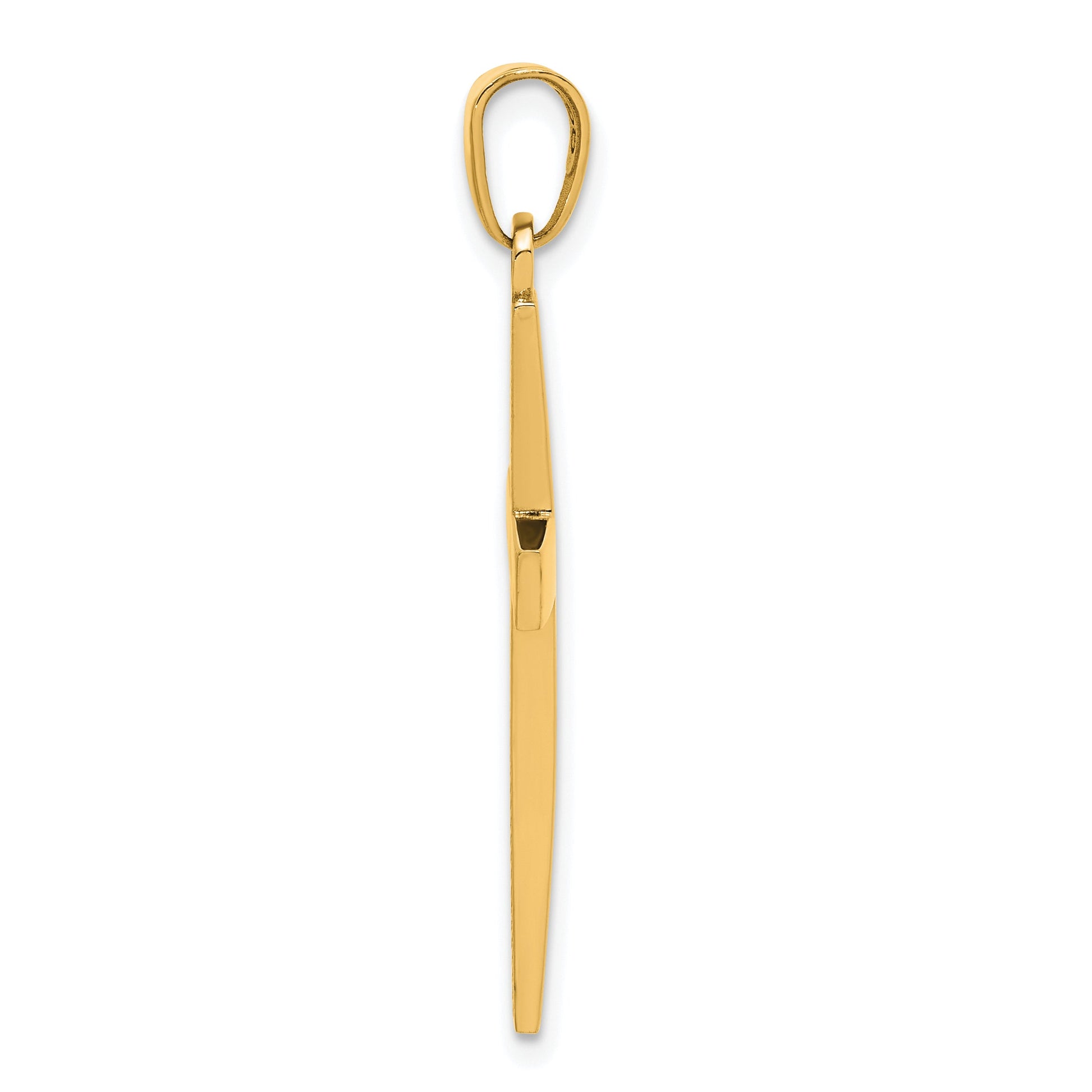 The 10K Yellow Gold Polished Beveled Cross Charm radiates elegance and faith in one flawless piece. Crafted entirely from 10K yellow gold, this pendant showcases a polished finish that captures the light beautifully. Measuring 36 mm in total length with a cross length of 29 mm and width of 18 mm, it presents a solid, eye-catching design. The casting process gives it strength and durability, while the sleek beveled edges add a modern touch. The bail, 5 mm wide and 7 mm long, ensures it hangs gracefully on any chain, adding an element of sophistication to your jewelry collection.