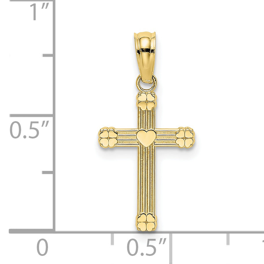 The 10K Yellow Gold Textured Center Heart Small Cross Charm is a unique piece that beautifully combines spirituality with sentiment. Crafted from 10K yellow gold, this polished charm measures 14.8 mm in length and features a captivating center heart design. Its solid construction ensures durability, while the textured finish adds a touch of elegance. The small cross charm is perfect for everyday wear, offering a subtle statement of faith. With a bail width of 4.5 mm, it's easily paired with a favorite chain. Enhance your jewelry collection with the timeless beauty of this 10K Yellow Gold Textured Center Heart Small Cross Charm.