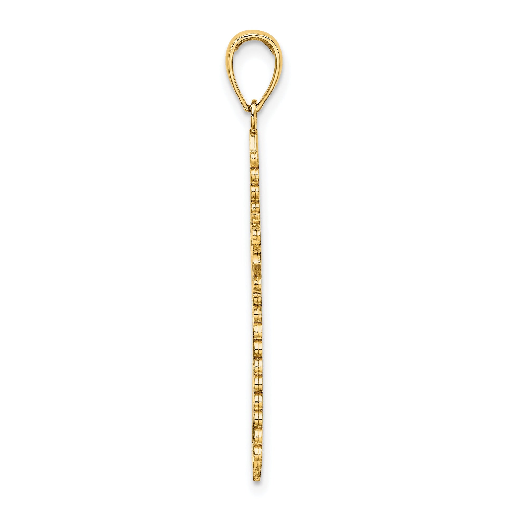 The 10K Yellow Gold Lace Border Cross Charm is a blend of elegance and craftsmanship. Made from genuine 10K gold, its polished look gives it a classy touch. Measuring 36.4 mm in length, this charm is ideal for those seeking a statement piece. The 29.4 mm x 20.78 mm cross is intricately designed with a lace border, adding a dash of sophistication. The solid construction ensures durability, while the 5 mm wide bail makes it easy to pair with different chains. Elevate your style with the timeless 10K Yellow Gold Lace Border Cross Charm.