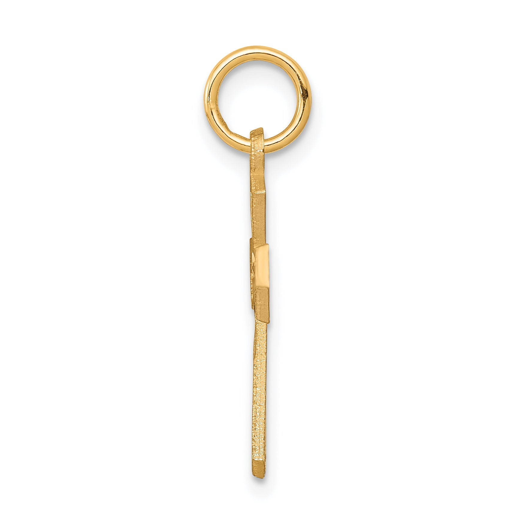 Introducing the 10k Yellow Gold Cross Charm, a piece of timeless beauty. Crafted from pure 10k yellow gold, this polished charm shines with elegance. Measuring 25 mm in length and 12 mm in width, it holds a solid form that ensures durability. Perfect for any themed jewelry collection, this charm stands out with its classic design. Whether worn on a necklace or bracelet, the 10k Yellow Gold Cross Charm adds a touch of sophistication to your style.