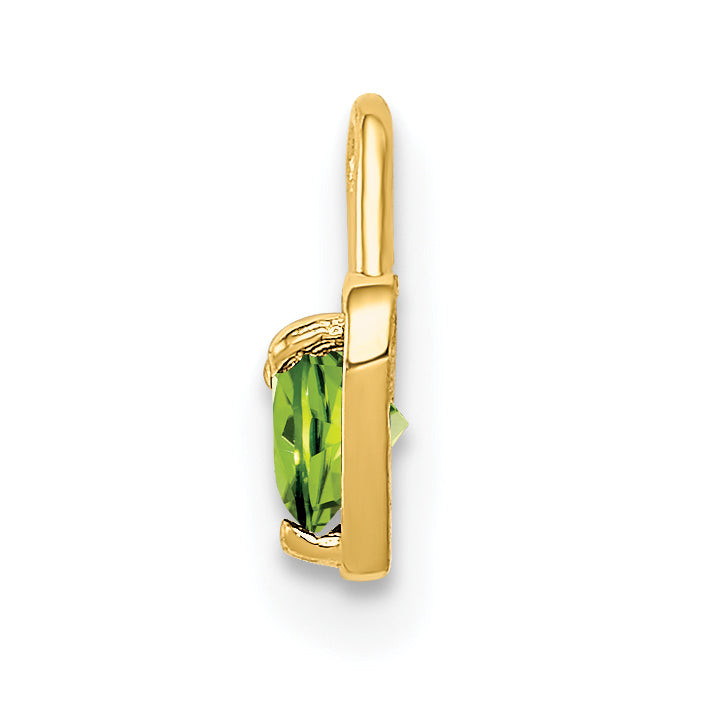 Introducing the 10K Yellow Gold August Synthetic Birthstone Heart Charm, a meaningful piece for those born in August. Crafted from polished 10K gold, this charm shimmers with a stunning green round synthetic birthstone at its center. The heart measures a dainty 5.24 mm by 4.72 mm, perfect for everyday elegance. The solid design ensures durability while keeping it lightweight. This lovely charm is sure to capture attention when worn as a pendant or charm. Celebrate August birthdays with this exquisite 10K Yellow Gold August Synthetic Birthstone Heart Charm, a token of personal style and sentiment.