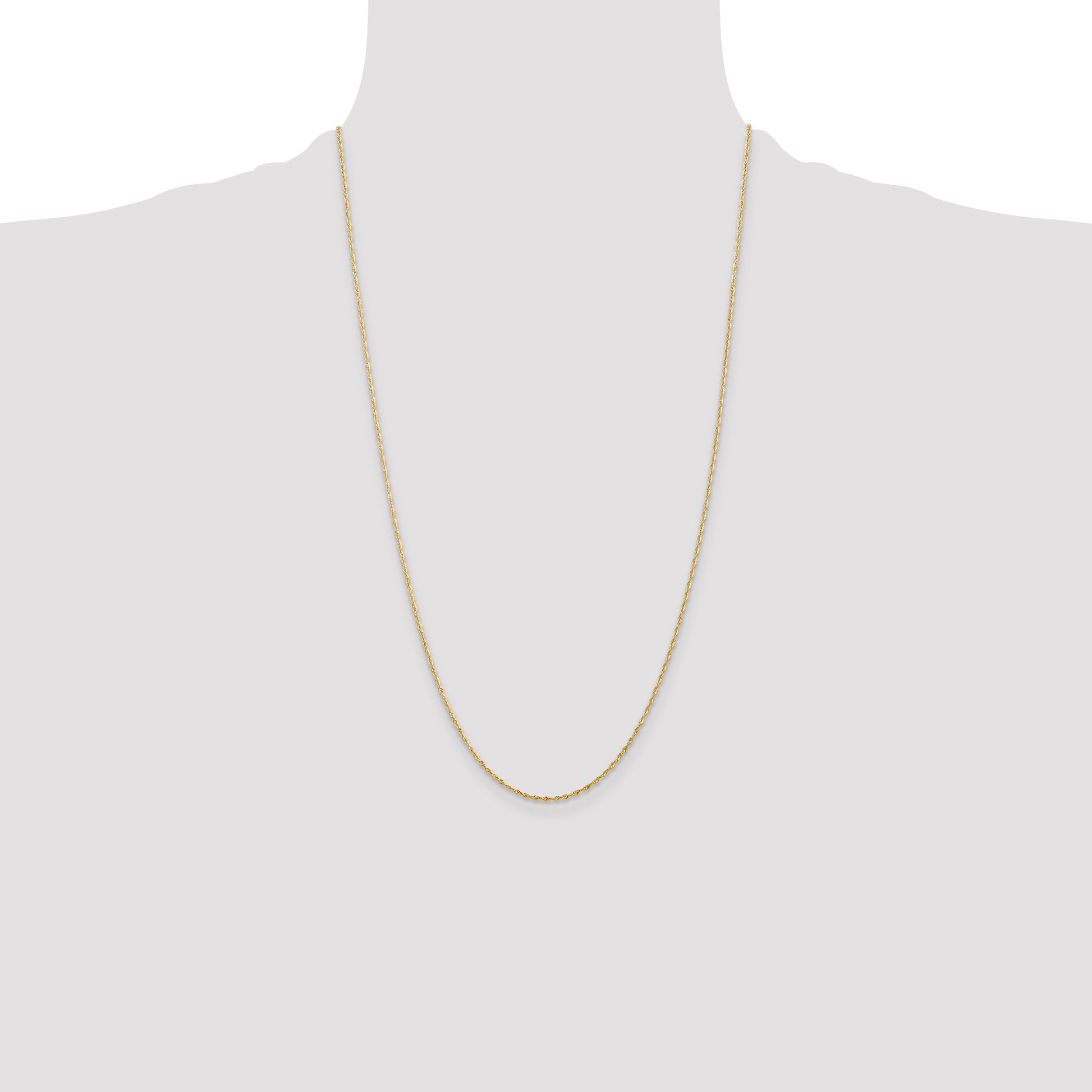 The 10K Yellow Gold 1.5mm Diamond-Cut Lightweight Rope Chain is the perfect blend of style and comfort. Crafted from pure gold, this necklace boasts a polished finish and a sleek 1.5mm width that catches light beautifully. Its diamond-cut texture adds a unique sparkle, making it stand out. The chain measures 26 inches long and is lightweight, so you'll barely feel it while wearing. Featuring a sturdy lobster clasp, this unisex piece is easy to wear all day. The 10K Yellow Gold 1.5mm Diamond-Cut Lightweight Rope Chain offers a lifetime guarantee and timeless appeal for any look.
