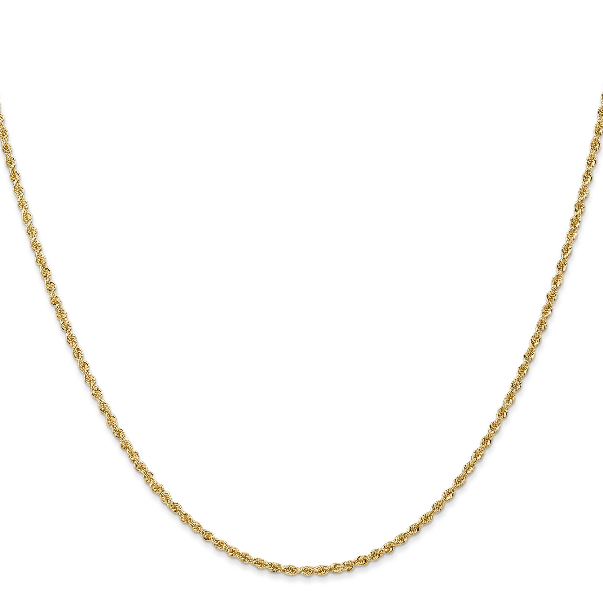 The 10K Yellow Gold 1.6mm Solid Regular Rope Chain is a sleek piece perfect for everyday wear. Crafted from high-quality 10K gold, it boasts a polished finish that adds a touch of shine. The 18-inch chain features a sturdy lobster clasp that ensures secure wear. Its 1.6mm width gives it a subtle, elegant look suitable for both men and women. This durable rope chain offers a lifetime guarantee, reflecting its lasting value. The 10K Yellow Gold 1.6mm Solid Regular Rope Chain is a versatile accessory that elevates any style while delivering lasting quality.