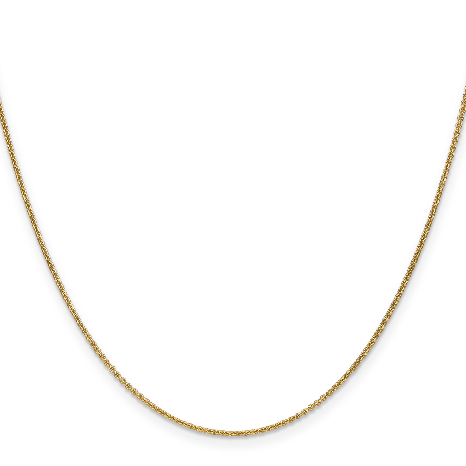 The 10K Yellow Gold 1mm Round Open Link Cable Chain is a timeless piece of fine jewelry that elevates any outfit. Made with 10K pure gold, this polished chain shines with a beautiful yellow color. At 18 inches long, it’s the perfect length for any occasion, fitting comfortably around the neck. The 1mm cable chain features solid links crafted with precision through a careful casted and machine-made process. A sturdy lobster clasp ensures it stays secure. The 10K Yellow Gold 1mm Round Open Link Cable Chain makes an essential addition to any jewelry collection.