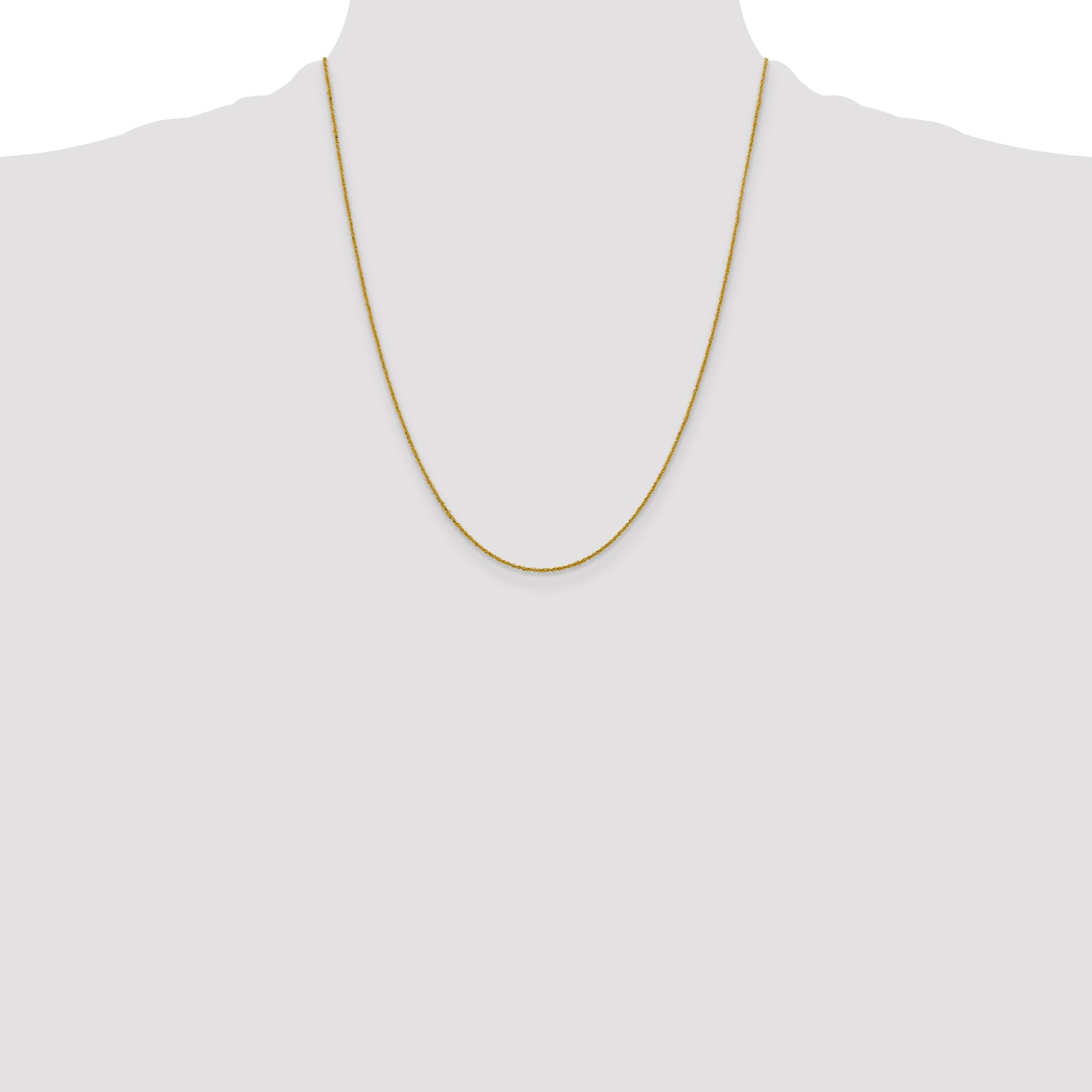 The 10K Yellow Gold 1mm Sparkle Singapore Chain is a sleek, shining necklace perfect for everyday wear. Made from high-quality 10K gold, it features a polished finish that catches the light with ease. The chain measures 22 inches long and is just 1mm wide, giving it a subtle yet elegant look. Its sturdy lobster clasp keeps it secure, while the Singapore style adds a refined touch. Whether you want a simple everyday piece or a versatile layer for your look, the 10K Yellow Gold 1mm Sparkle Singapore Chain fits the bill. Crafted for durability and style, it comes with a lifetime guarantee to keep you confident in your jewelry.