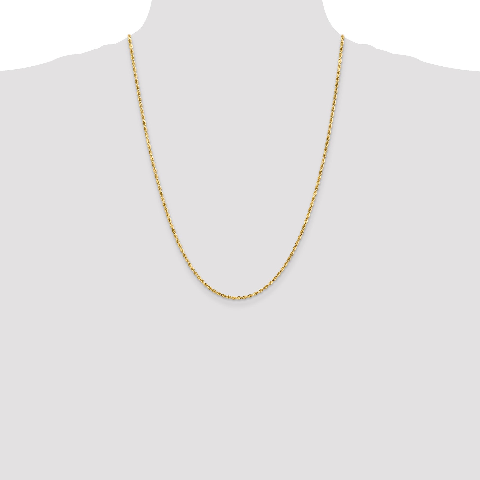 Meet sophistication with the 10K Yellow Gold 2.25mm D/C Quadruple Rope Chain, a standout in fine jewelry. This polished piece offers a 24-inch length, perfect for wearing alone or layering with other favorites. Its solid gold build, diamond-cut texture, and 2.25mm width showcase a brilliant shine that captivates any room. The lobster clasp ensures a secure and comfortable fit. Elevate your jewelry collection with this timeless necklace that blends elegance and versatility. Embrace the classic allure of the 10K Yellow Gold 2.25mm D/C Quadruple Rope Chain and enjoy its lasting appeal.
