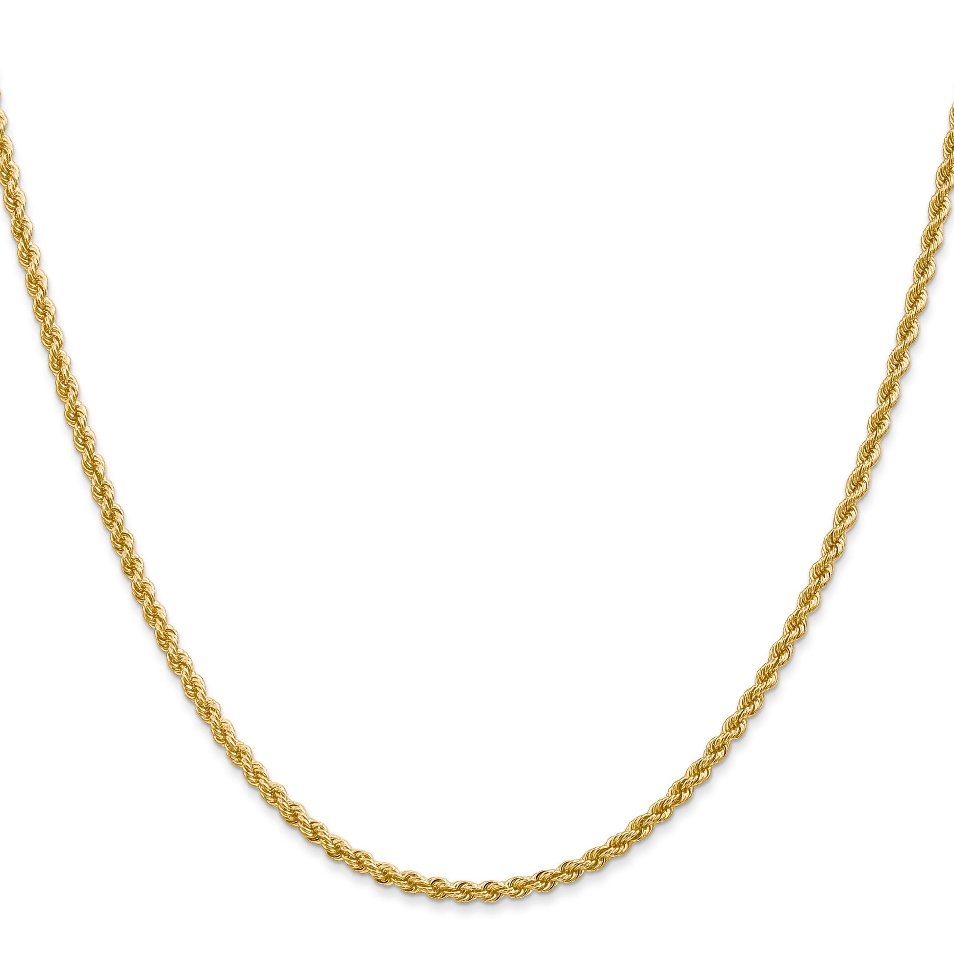 The 10K Yellow Gold 2.25mm Regular Rope Chain is a must-have for those who appreciate classic elegance. Crafted from solid 10K gold, this chain gleams with a polished finish that captures attention. Its 24-inch length ensures a perfect fit for any neckline, while the 2.25 mm width adds just the right touch of sophistication. The rope design is timeless and versatile, suited for any occasion. Secure your style with the reliable lobster clasp. This handmade necklace exemplifies quality and artistry, making the 10K Yellow Gold 2.25mm Regular Rope Chain an essential addition to your jewelry collection.
