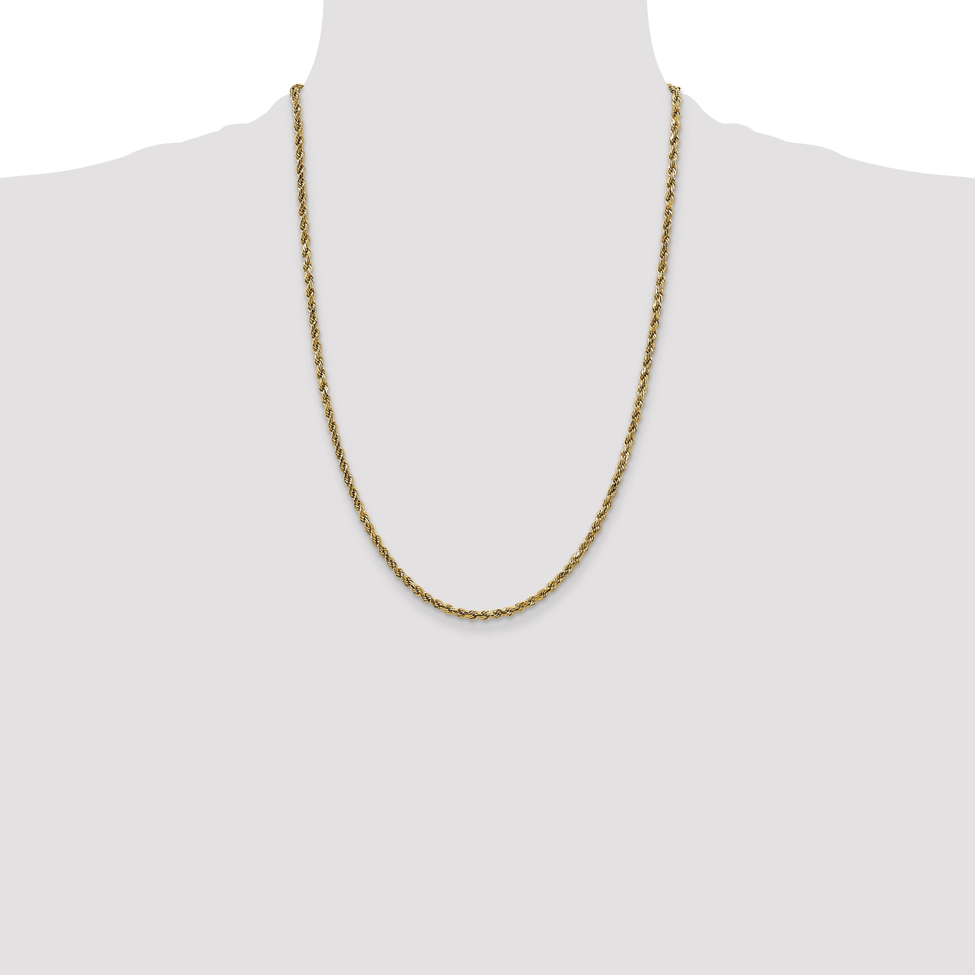 The 10K Yellow Gold 2.25mm Semi-Solid D/C Rope Chain shines bright around your neck. Crafted with care, this 24-inch, diamond-cut rope chain is made from polished, semi-solid gold. It's both beautiful and robust, ensuring it will last through the years. The necklace features a stylish 2.25mm width, making it perfect for everyday wear or special occasions. The lobster clasp ensures a secure fit, providing both style and safety. The 10K Yellow Gold 2.25mm Semi-Solid D/C Rope Chain makes a stunning addition to any jewelry collection.