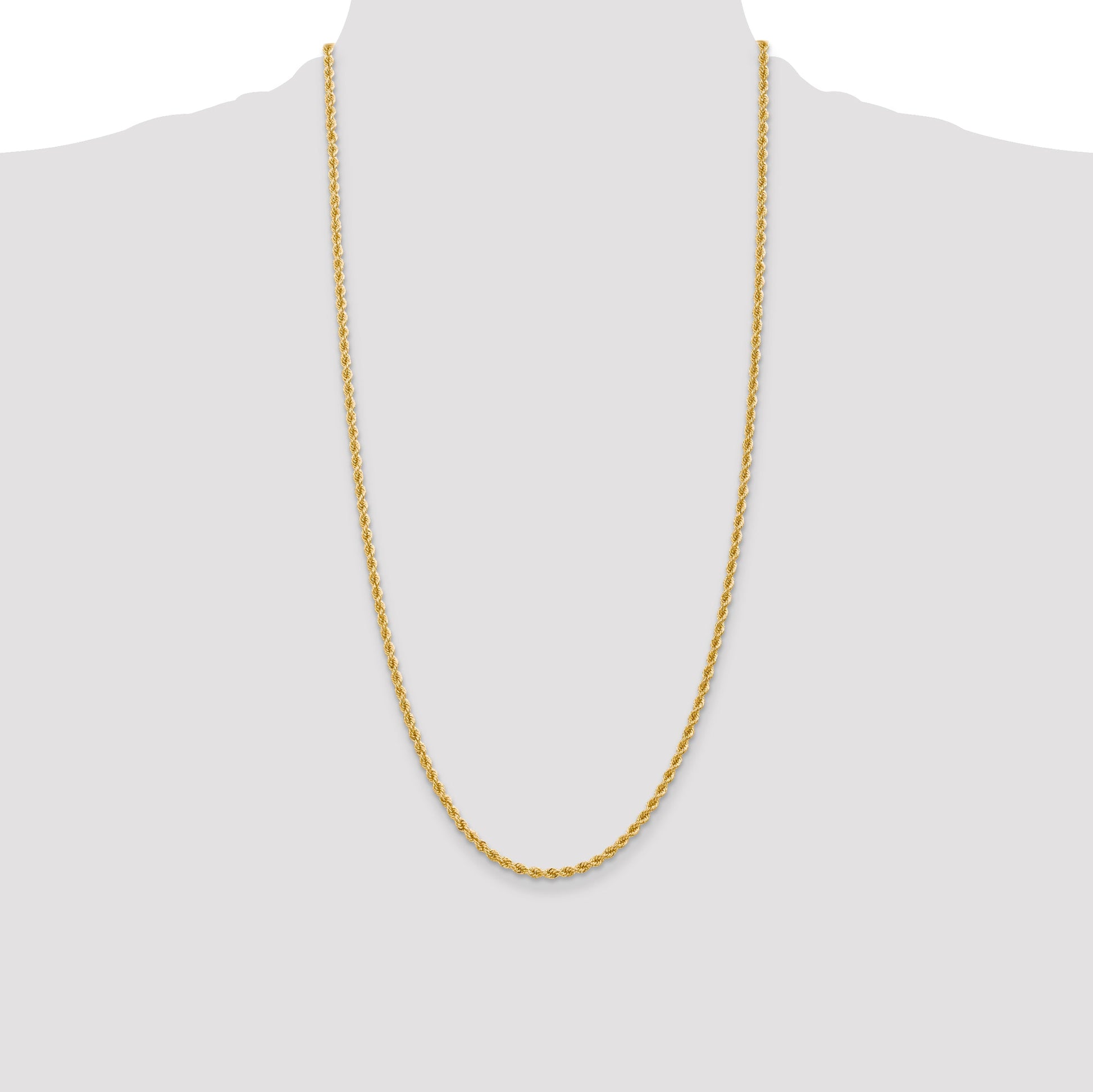 The 10K Yellow Gold 2.75mm Regular Rope Chain is an exquisite piece that elevates any ensemble effortlessly. Carefully handcrafted with a solid design, this elegant chain showcases the fine luster of polished yellow gold. At 28 inches in length, the rope chain drapes beautifully, adding a touch of sophistication to your neckline. The 2.75mm width strikes the right balance between subtlety and presence, making it versatile for both casual and formal wear. Equipped with a durable lobster clasp, it ensures secure wear all day. Experience timeless elegance with the 10K Yellow Gold 2.75mm Regular Rope Chain—a true wardrobe staple.