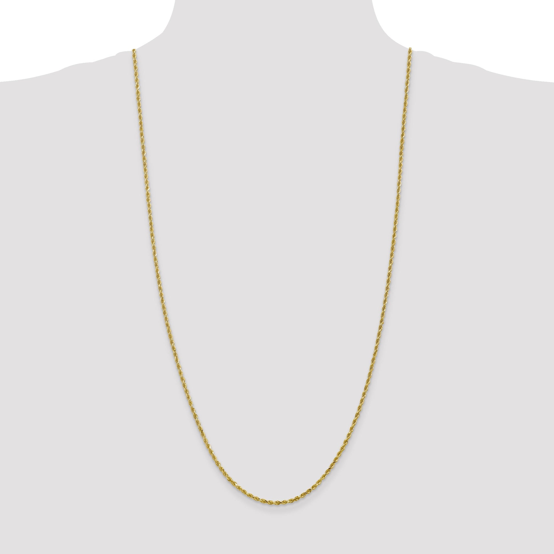The 10K Yellow Gold 10K 2.5mm Diamond-Cut Rope Chain offers a bold look with its bright polish and intricate design. Measuring 30 inches long, this unisex necklace features a sturdy lobster clasp for a secure fit. The chain’s diamond-cut pattern adds a touch of sparkle to any outfit, whether casual or formal. Made from solid 10K gold, it’s crafted with care through a reliable extrusion process and finished to perfection. Known for durability and style, the 10K Yellow Gold 10K 2.5mm Diamond-Cut Rope Chain promises a timeless piece with a lifetime guarantee, making it a classic addition to any jewelry collection.