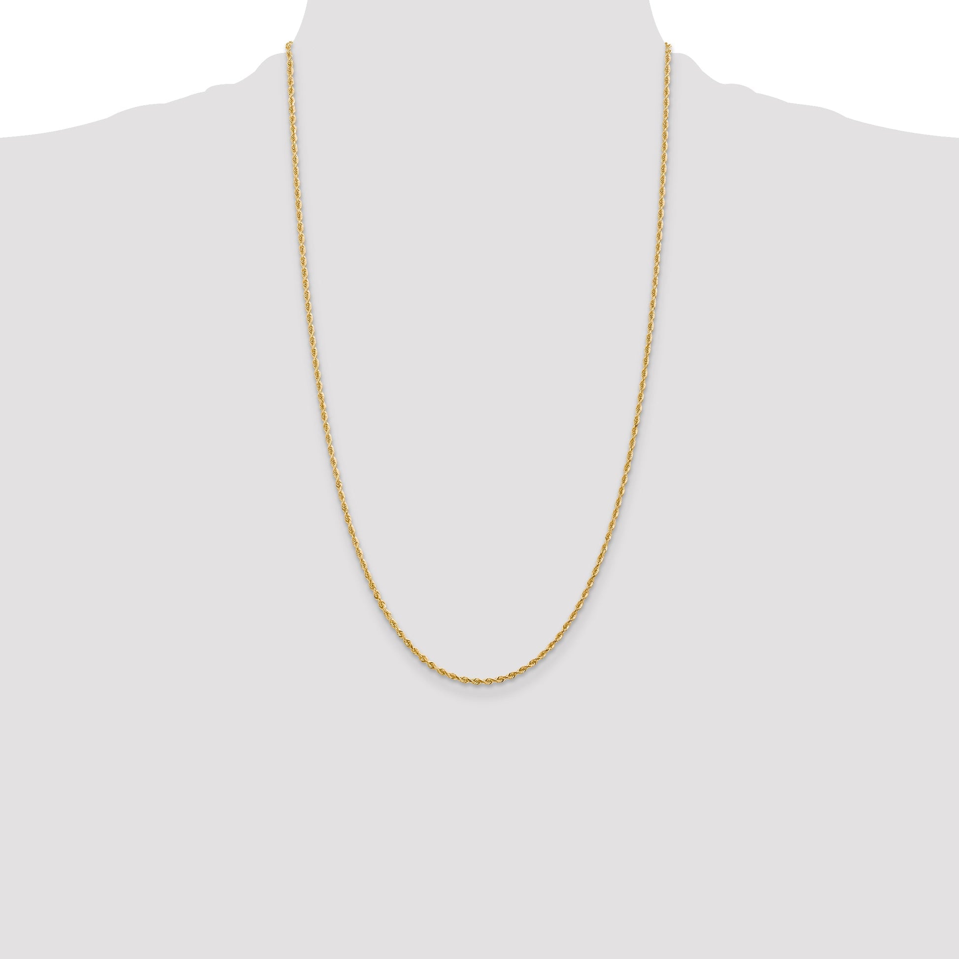 Meet the stunning 10K Yellow Gold 2mm D/C Quadruple Rope Chain, a true gem in the world of fine jewelry. Crafted from solid 10K yellow gold, this polished rope chain boasts a unique diamond-cut texture. At 26 inches long, it's designed to make a statement, complementing both casual and formal attire. The secure lobster clasp ensures it stays in place all day. Its 2mm width provides the perfect balance of durability and style. Whether you're buying for yourself or a loved one, the 10K Yellow Gold Quadruple Rope Chain promises undeniable elegance and charm.