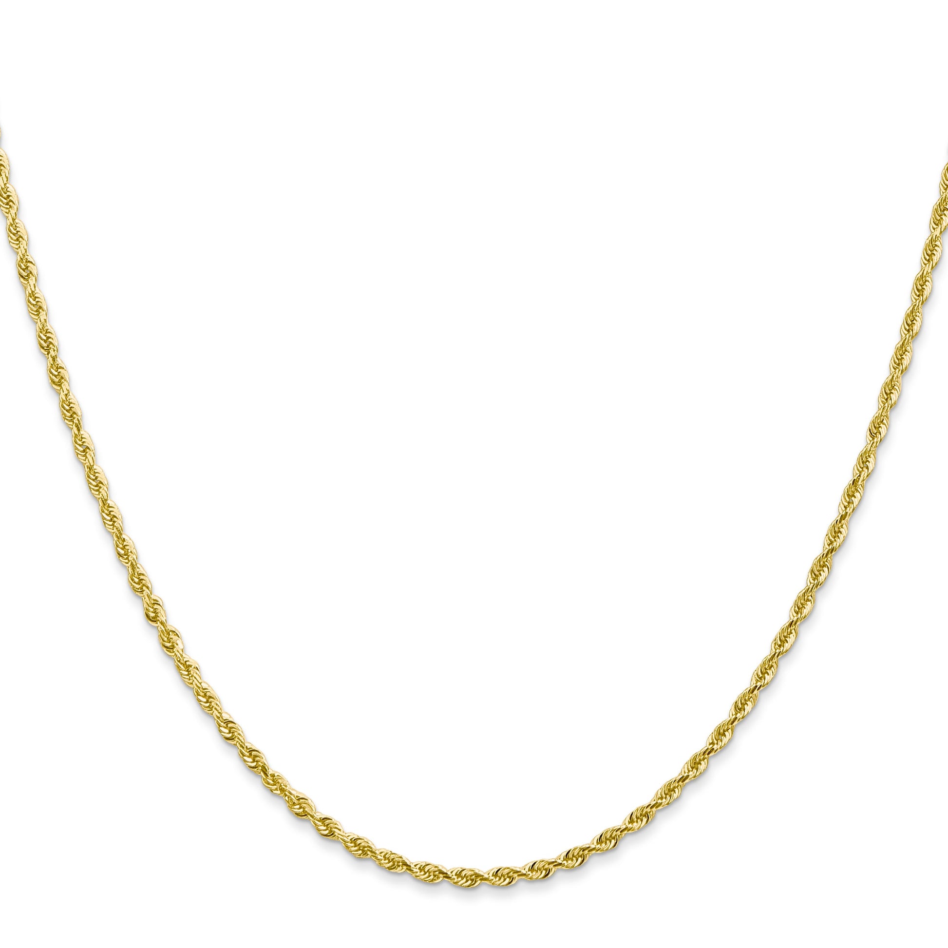 Introducing the 10K Yellow Gold 2mm D/C Quadruple Rope Chain, a classic accessory that embodies timeless elegance. With its polished finish and diamond-cut texture, this necklace shines brilliantly and complements any style. Made of solid 10K yellow gold, the chain measures 30 inches in length, perfect for versatile layering or a standalone statement. Its 2mm width strikes the right balance between subtlety and noticeable charm. The lobster clasp ensures security, allowing you to wear it all day with ease. The 10K Yellow Gold 2mm D/C Quadruple Rope Chain is a testament to enduring style and sophistication.