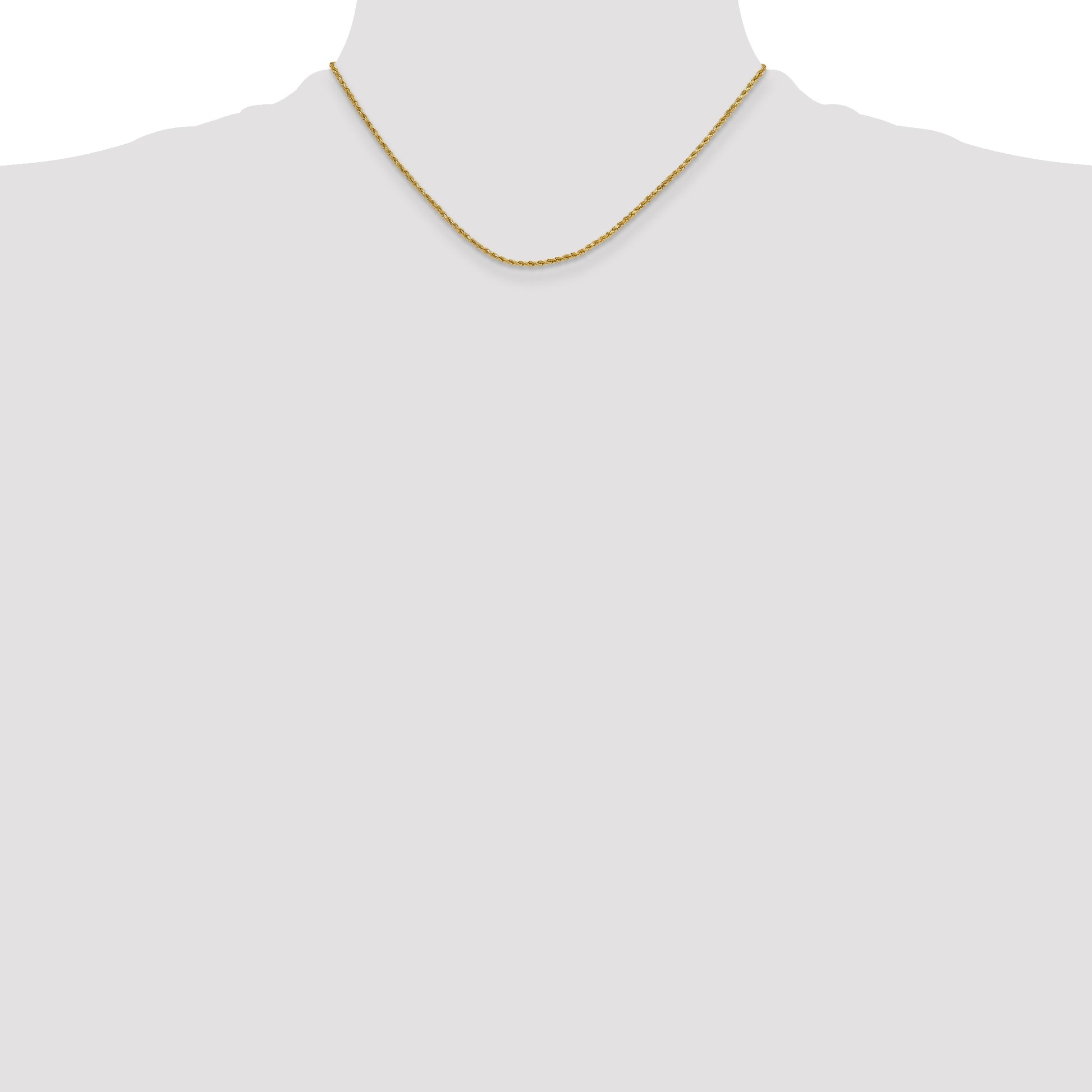 Discover the elegance of the 10K Yellow Gold 2mm Semi-Solid D/C Rope Chain, a timeless necklace every jewelry box needs. Expertly crafted from pure 10K yellow gold, this chain shines with a polished finish that captures the light beautifully. Its 16-inch length sits gracefully on the neckline, while the diamond-cut texture adds sparkle and sophistication. The 2mm width makes it a versatile choice for everyday wear or special occasions. A secure lobster clasp ensures ease of wear. This semi-solid rope chain is a classic piece, offering both style and durability. Indulge in the luxurious allure of gold today.