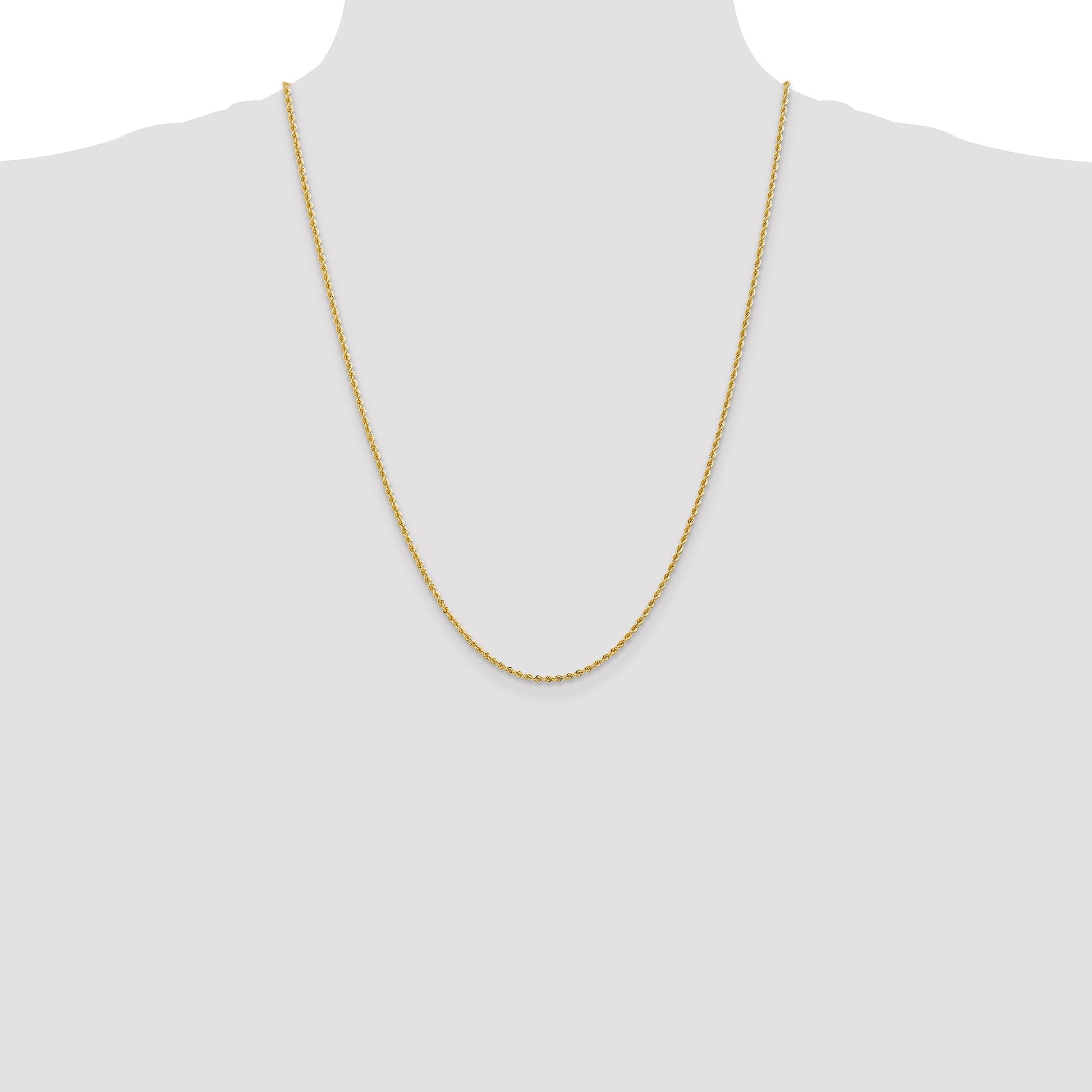 Show off your style with the 10K Yellow Gold 2mm Solid Regular Rope Chain. Crafted from pure 10K gold, this necklace offers a shiny, polished look that stays bright. It measures 24 inches long, making it perfect for layering or wearing alone. The sturdy lobster clasp keeps it secure, so you can wear it with confidence. This unisex rope chain combines durability with sleek design, ideal for everyday wear or special occasions. With a lifetime guarantee, the 10K Yellow Gold 2mm Solid Rope Chain is a timeless piece you can count on to elevate your jewelry game.