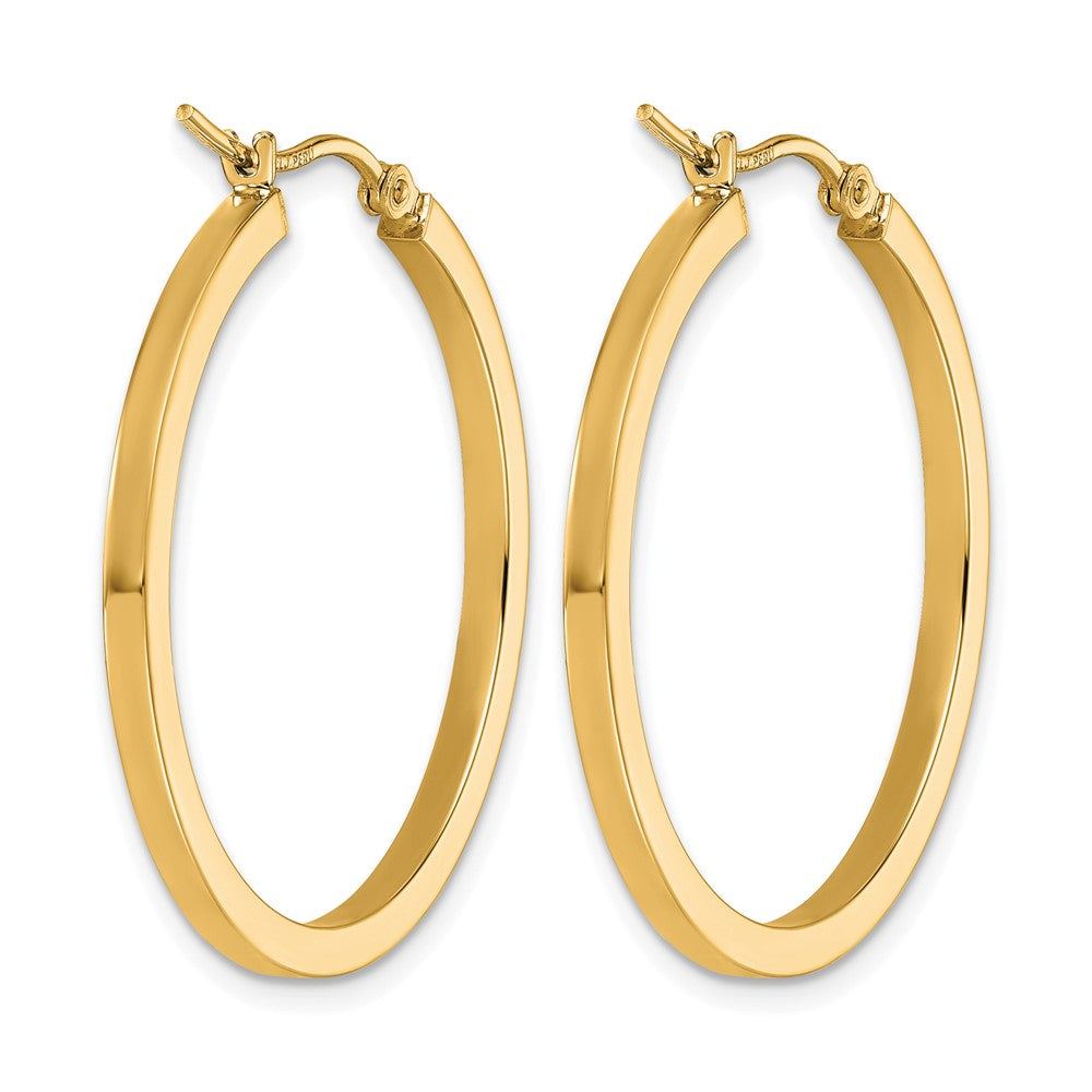 Add a pop of shine with the 10K Yellow Gold 2mm Square Tube Hoop Earrings. These stylish hoops are crafted from bright, polished yellow gold with a sturdy 2mm thickness. Each pair measures 30 mm in length and width, making them perfect for everyday wear or special occasions. The sleek square tube design adds a modern touch to classic hoop earrings. Featuring a secure wire and clutch closure, these earrings stay put all day long. The 10K Yellow Gold 2mm Square Tube Hoop Earrings come with a lifetime guarantee, ensuring lasting beauty and quality for any woman who loves a simple, chic style.
