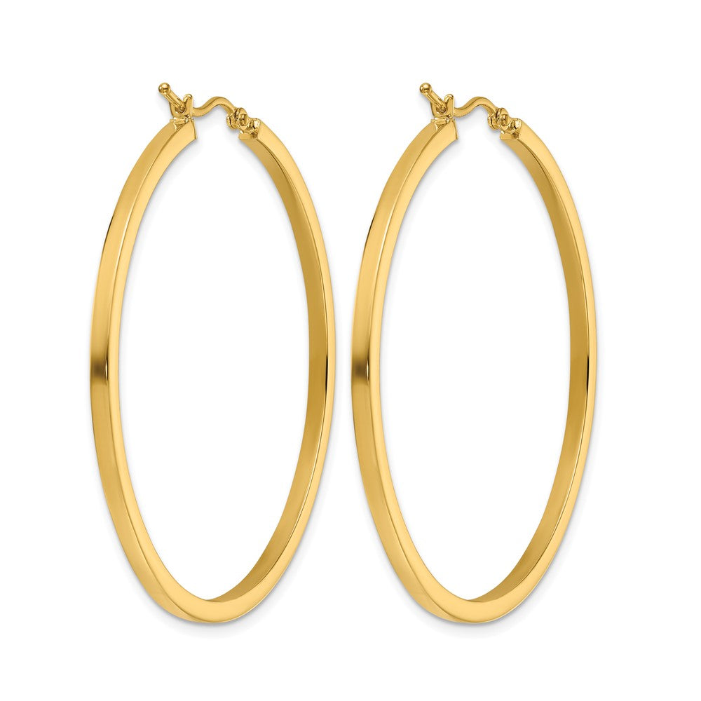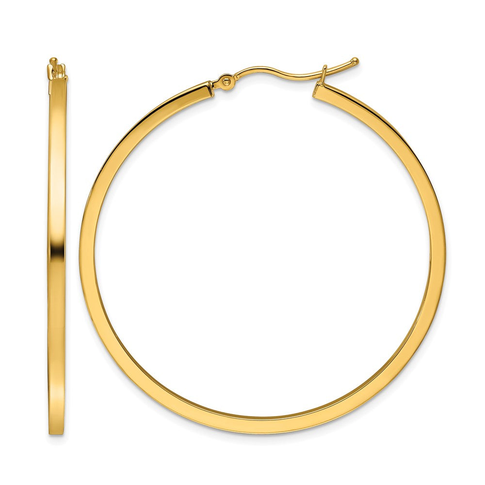 Elevate your style with the 10K Yellow Gold 2mm Square Tube Hoop Earrings. These earrings feature a sleek and modern design that adds just the right touch of elegance to any look. Made from pure 10K yellow gold, they are polished to a bright shine and have a sturdy wire & clutch closure for secure wear. With a 45mm size and 2mm thickness, these hoop earrings are comfortable and versatile. Perfect for daily wear or special occasions, the 10K Yellow Gold 2mm Square Tube Hoop Earrings offer timeless charm and a lifetime guarantee for lasting beauty and confidence.