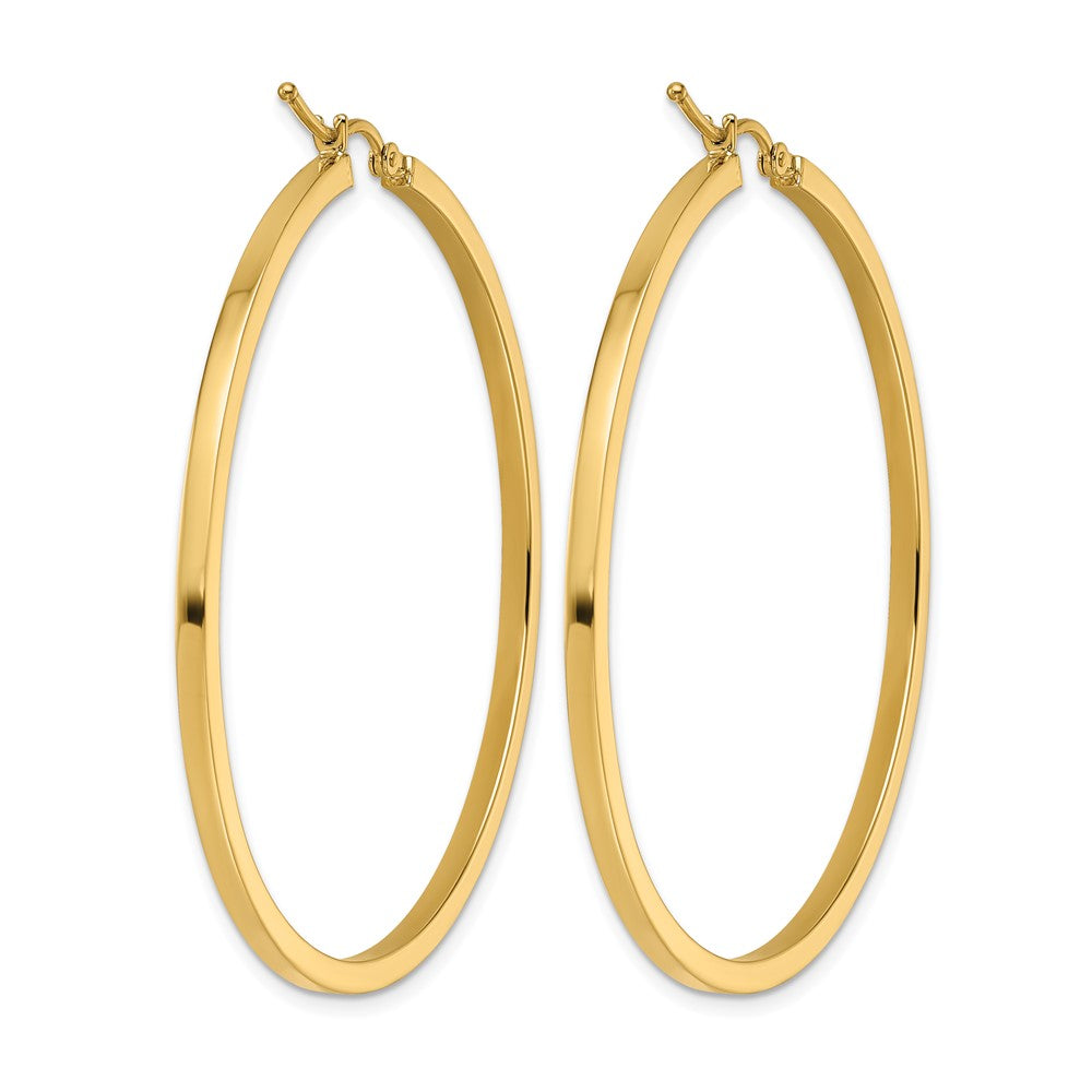 Discover the timeless charm of the 10K Yellow Gold 2mm Square Tube Hoop Earrings. These sleek earrings are crafted from genuine 10K yellow gold, ensuring durability and a warm shine. Measuring 50mm in length, they sit comfortably and add a touch of elegance to any look. The square tube design gives a modern twist to classic hoops, while the polished finish enhances their sleek style. The sturdy wire and clutch closure keep these earrings secure all day. Perfect for women who want a versatile accessory, the 10K Yellow Gold 2mm Square Tube Hoop Earrings offer style and quality with a lifetime guarantee.
