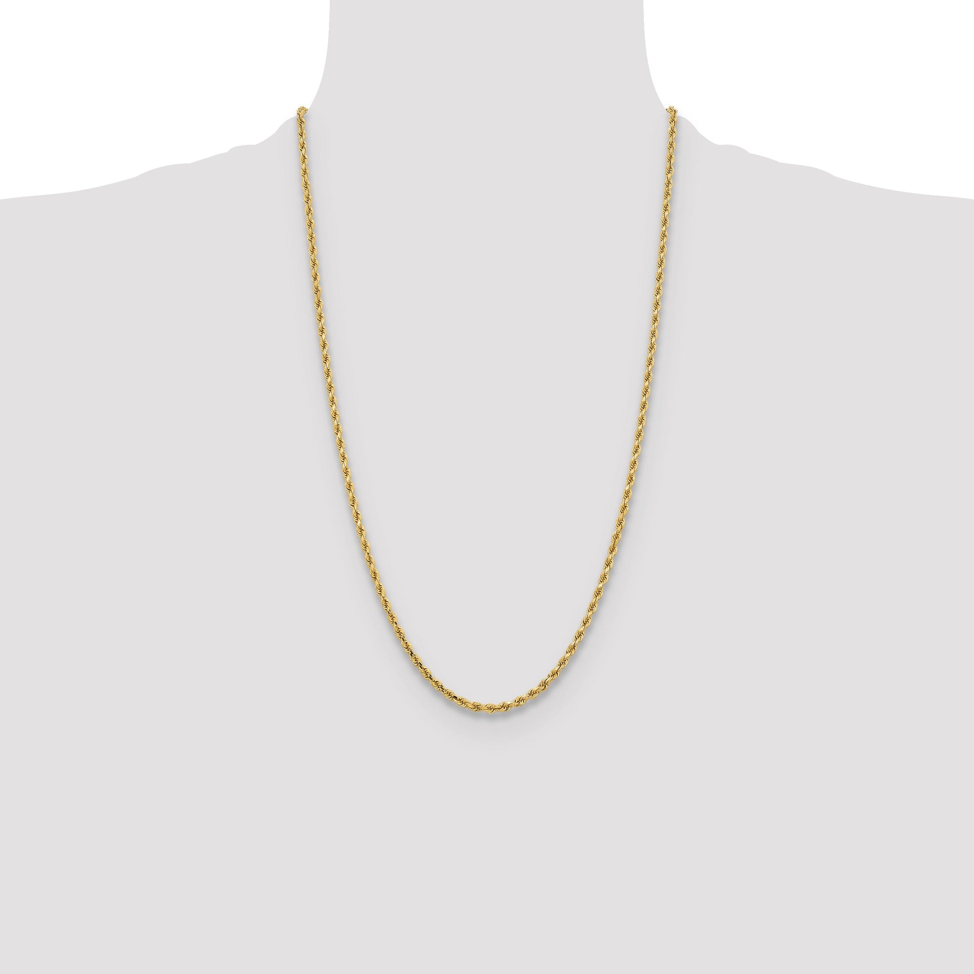 Introducing the 10K Yellow Gold 3.25mm Diamond-Cut Rope Chain, a stunning piece of jewelry designed to elevate your style. Crafted from 10K yellow gold, this necklace boasts a polished finish that gleams with every movement. The rope chain style, with its 3.25mm width, offers a timeless elegance and the diamond-cut texture adds a touch of sparkle. At 26 inches long, it sits perfectly around your neck. The lobster clasp ensures it's secure, making it ideal for any occasion. With its solid structure, the 10K Yellow Gold 3.25mm Diamond-Cut Rope Chain is a staple for any jewelry collection.