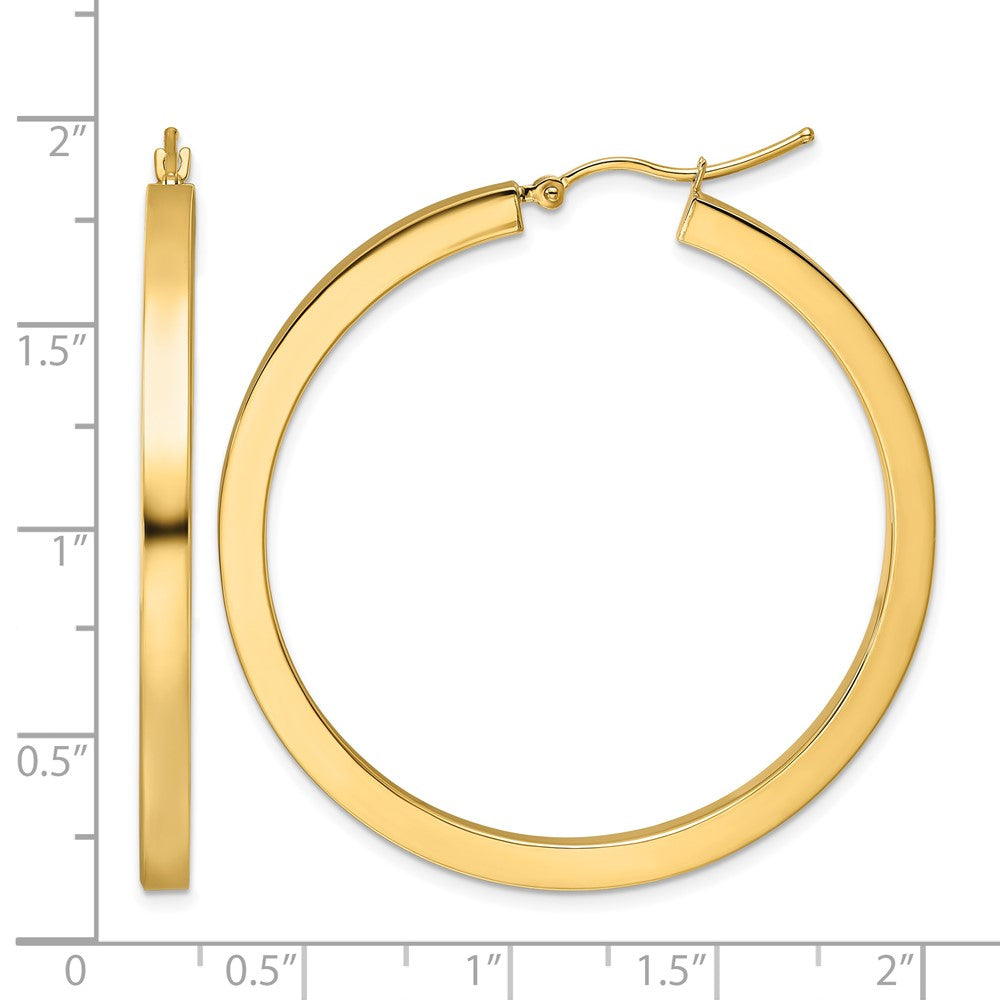 Make a bold statement with the 10K Yellow Gold 3mm Polished Square Hoop Earrings. Crafted from high-quality yellow gold, these earrings feature a sleek, polished surface that catches the light beautifully. The 45mm size offers a stylish, modern look that suits any outfit. The sturdy wire and clutch closure keep these hoops secure while adding ease to wear. Perfect for women who love a touch of shine and durability, the 10K Yellow Gold 3mm Polished Square Hoop Earrings come with a lifetime guarantee. These earrings are a must-have in any jewelry collection.