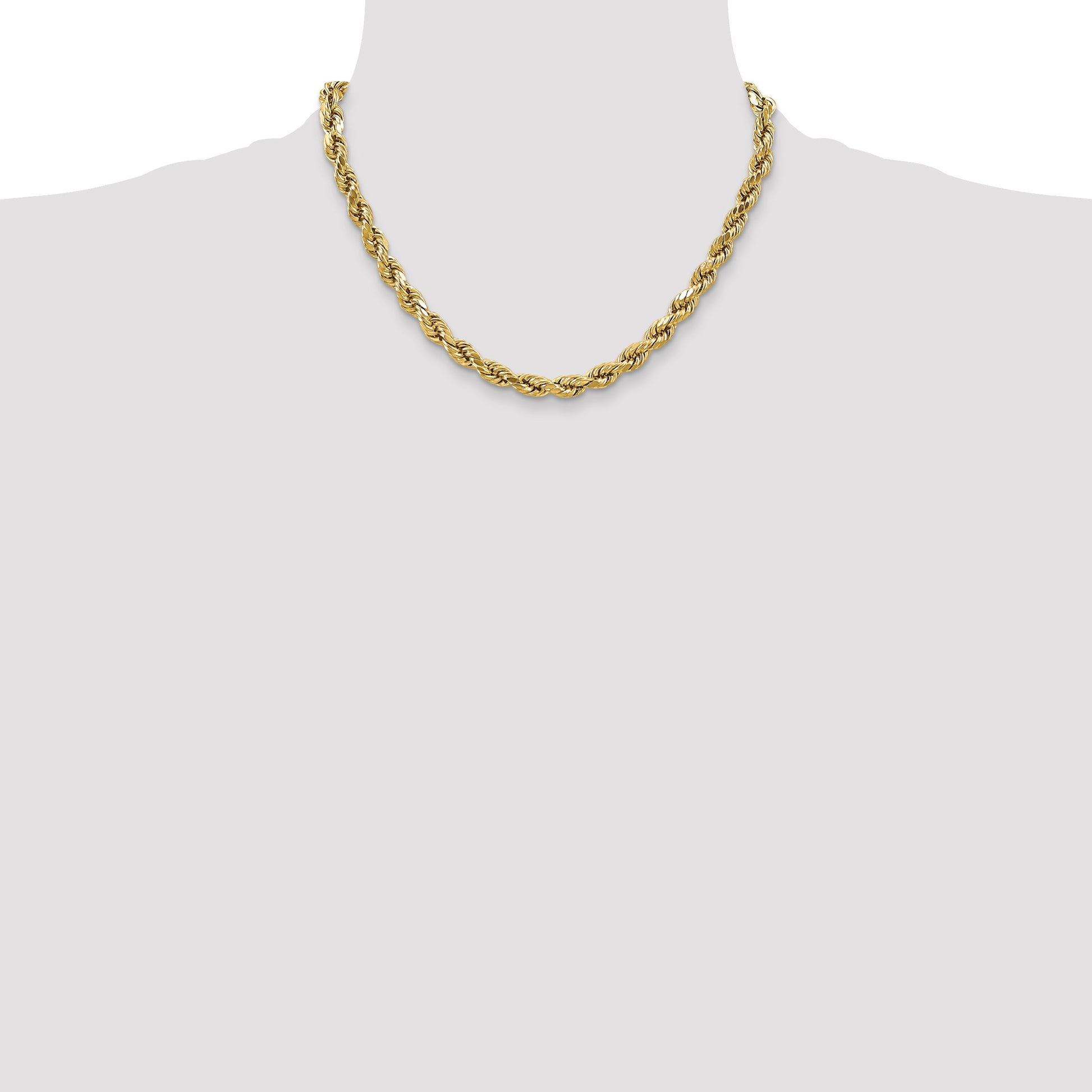 The 10K Yellow Gold 4.9mm Semi-Solid D/C Rope Chain offers elegance with a classic twist. Crafted in polished 10K yellow gold, it embodies timeless style in every 18-inch strand. Its 4.9mm diamond-cut rope design shimmers beautifully, catching light from every angle. This necklace is semi-solid, providing a lightweight feel with robust strength. The secure lobster clasp ensures it stays in place all day. Ideal for both casual and elegant occasions, this chain adds a touch of luxury to any outfit. Elevate your look with the 10K Yellow Gold 4.9mm Semi-Solid D/C Rope Chain today.