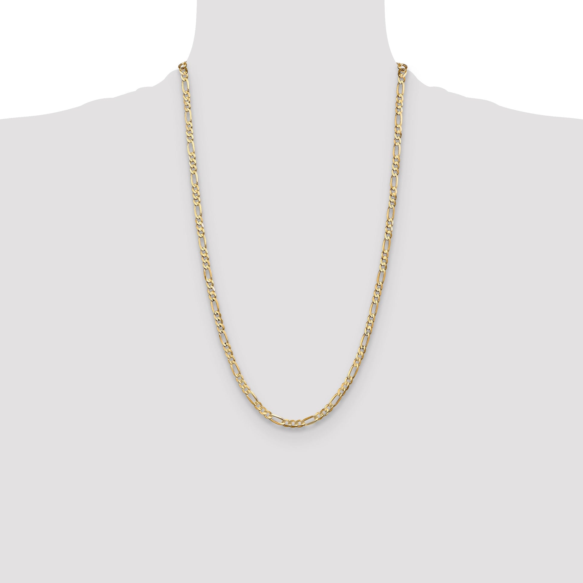 The 10K Yellow Gold 4.5mm Concave Figaro Chain is a stylish piece perfect for everyday wear. Crafted from solid 10K gold, it boasts a polished finish that adds shine and durability. The chain measures 26 inches and features a smooth, lightweight design that feels comfortable around the neck. The unique concave profile gives it a modern look, while the lobster clasp keeps it secure. This unisex chain pairs well with any outfit and makes a great gift. The Jewelry by design guarantees quality with a lifetime warranty. Elevate your style with the 10K Yellow Gold Concave Figaro Chain.
