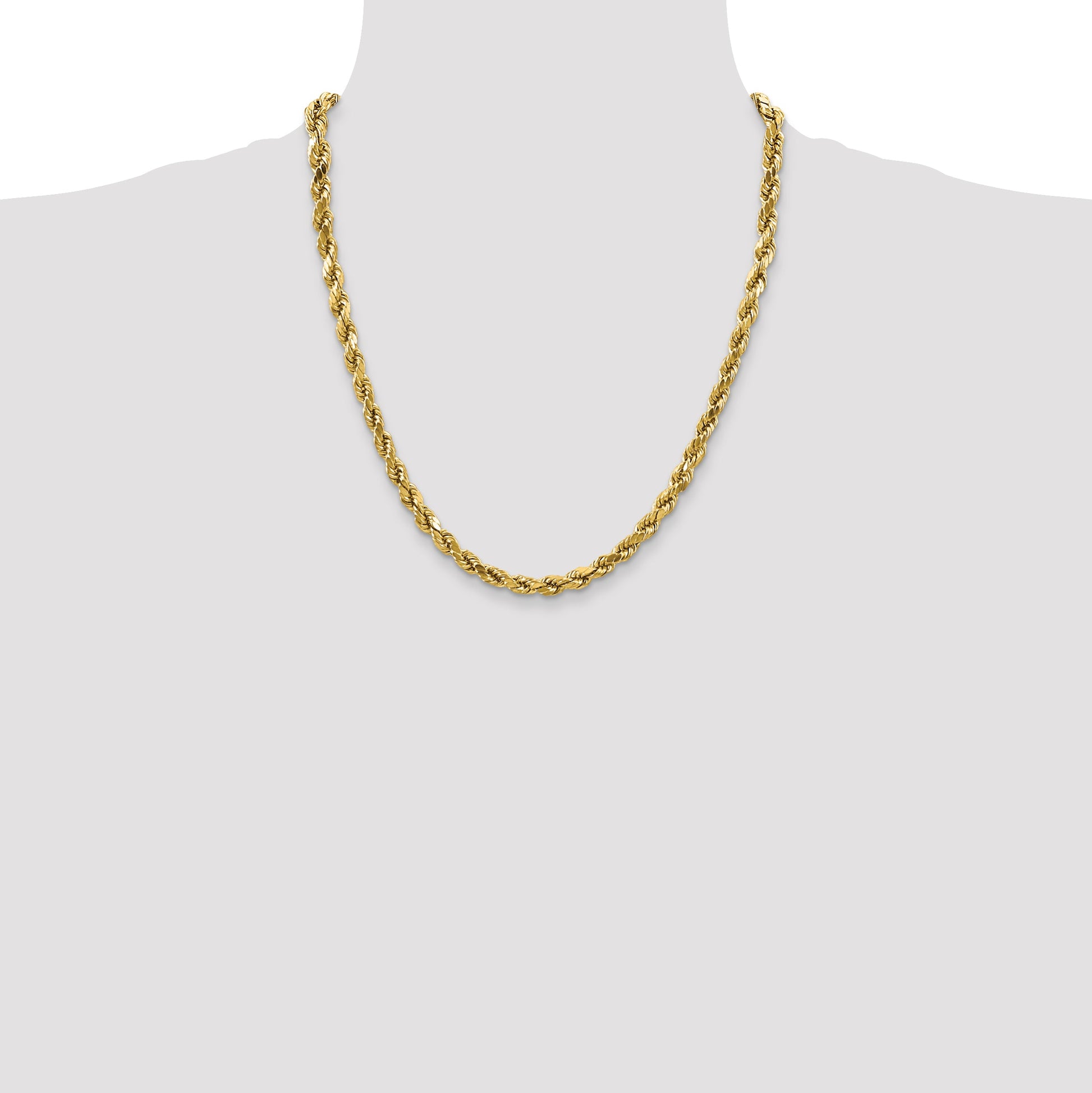 Introducing the 10K Yellow Gold 4mm Semi-Solid D/C Rope Chain, a stunning blend of timeless elegance and modern craftsmanship. This chain, skillfully crafted from 10K yellow gold, boasts a polished and diamond-cut finish for a lustrous appeal. With a 22-inch length and a 4mm width, it offers a substantial feel without being overly bulky. The semi-solid rope design provides both strength and flexibility, making it perfect for everyday wear or special occasions. Secured with a reliable lobster clasp, the 10K Yellow Gold 4mm Semi-Solid D/C Rope Chain is a remarkable piece that complements any look.