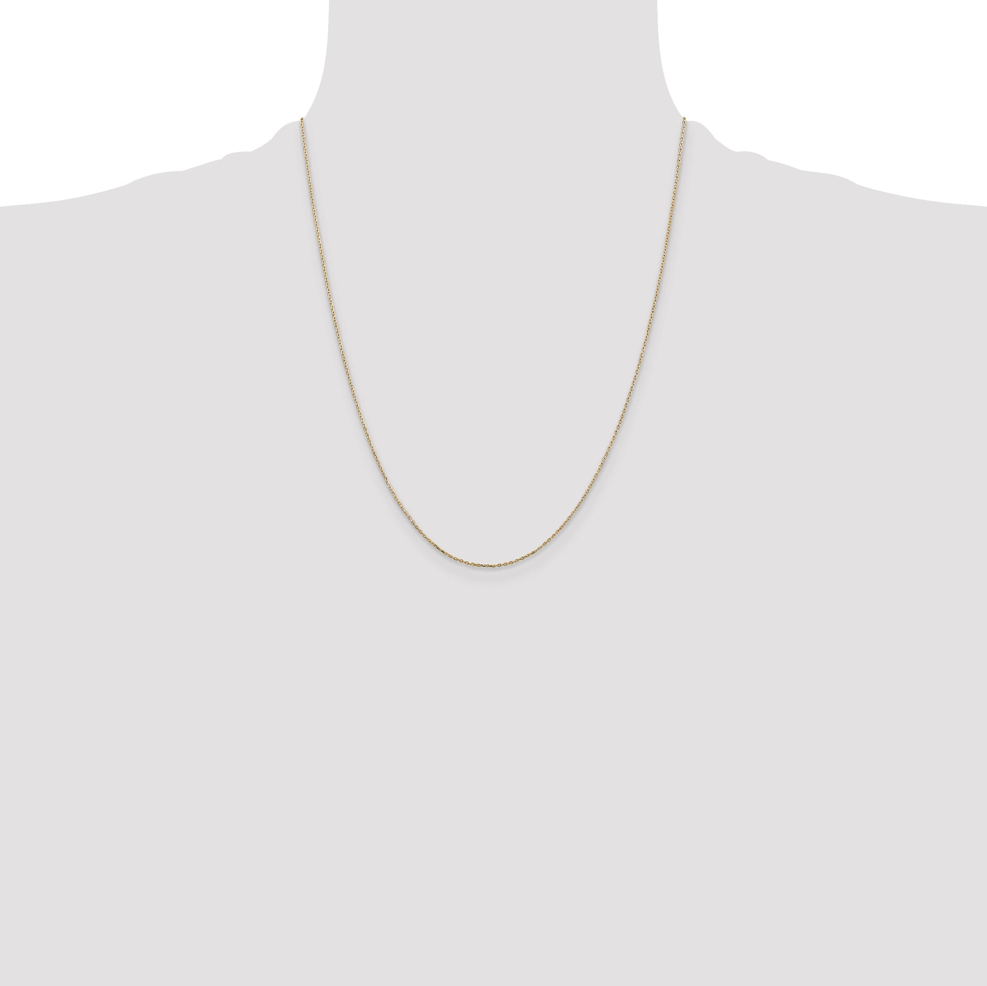 The 10K Yellow Gold .8mm D/C Cable Chain is a classy piece of jewelry that adds a touch of elegance to any outfit. This chain is crafted from pure 10K yellow gold, offering a warm and timeless hue. Measuring 22 inches, it effortlessly drapes around your neck, making it ideal for layering or wearing solo. The sturdy lobster clasp ensures secure closure, providing peace of mind. This cable-style chain is slender yet durable, allowing it to be a staple in your collection. Embrace sophistication with this 10K Yellow Gold .8mm D/C Cable With Lobster Clasp Chain.
