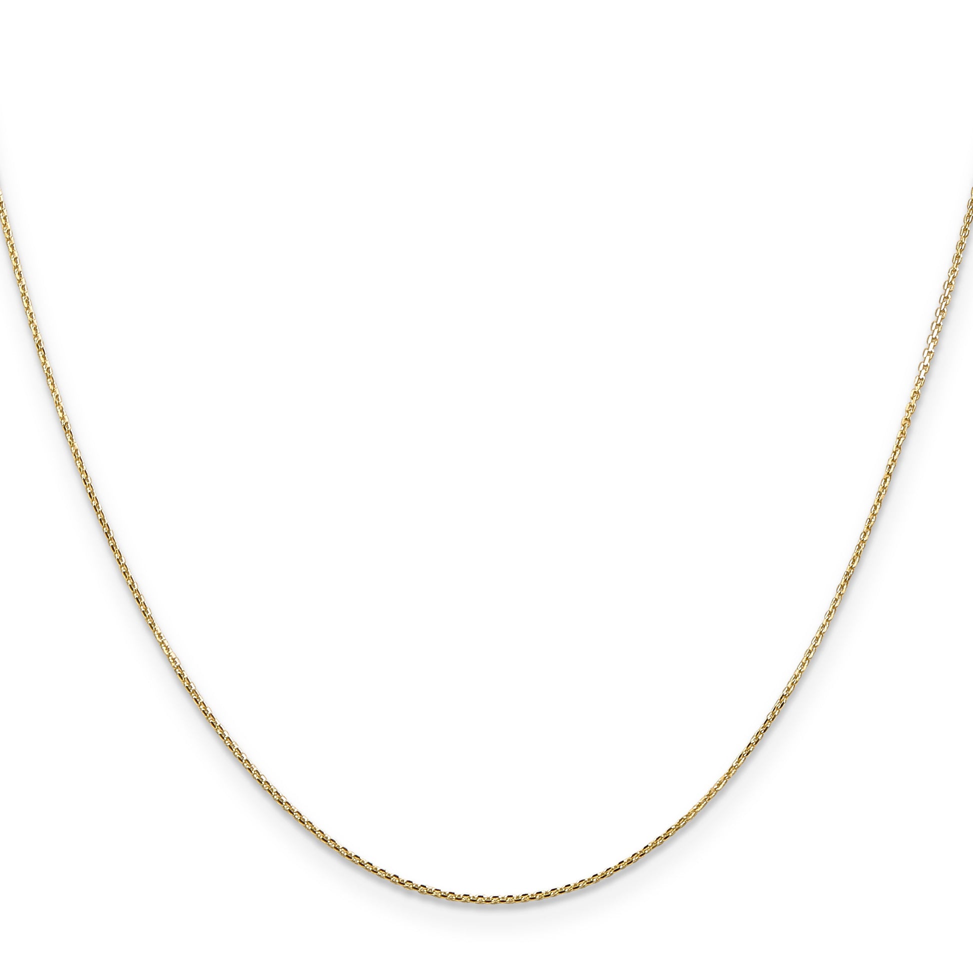 Introducing the 10K Yellow Gold 0.8mm D/C Round Open Link Cable Chain, a timeless piece every jewelry lover needs. Crafted from polished 10K yellow gold, this chain promises durability and elegance. The diamond-cut texture adds a subtle sparkle, enhancing its luxe appeal. At a sleek 16 inches, it's versatile, perfect for any occasion. Its lobster clasp ensures a secure fit, adding to its practical design. Ideal for layering with other necklaces, its cable chain style remains a classic. Elevate your ensemble with the 10K Yellow Gold 0.8mm D/C Round Open Link Cable Chain.
