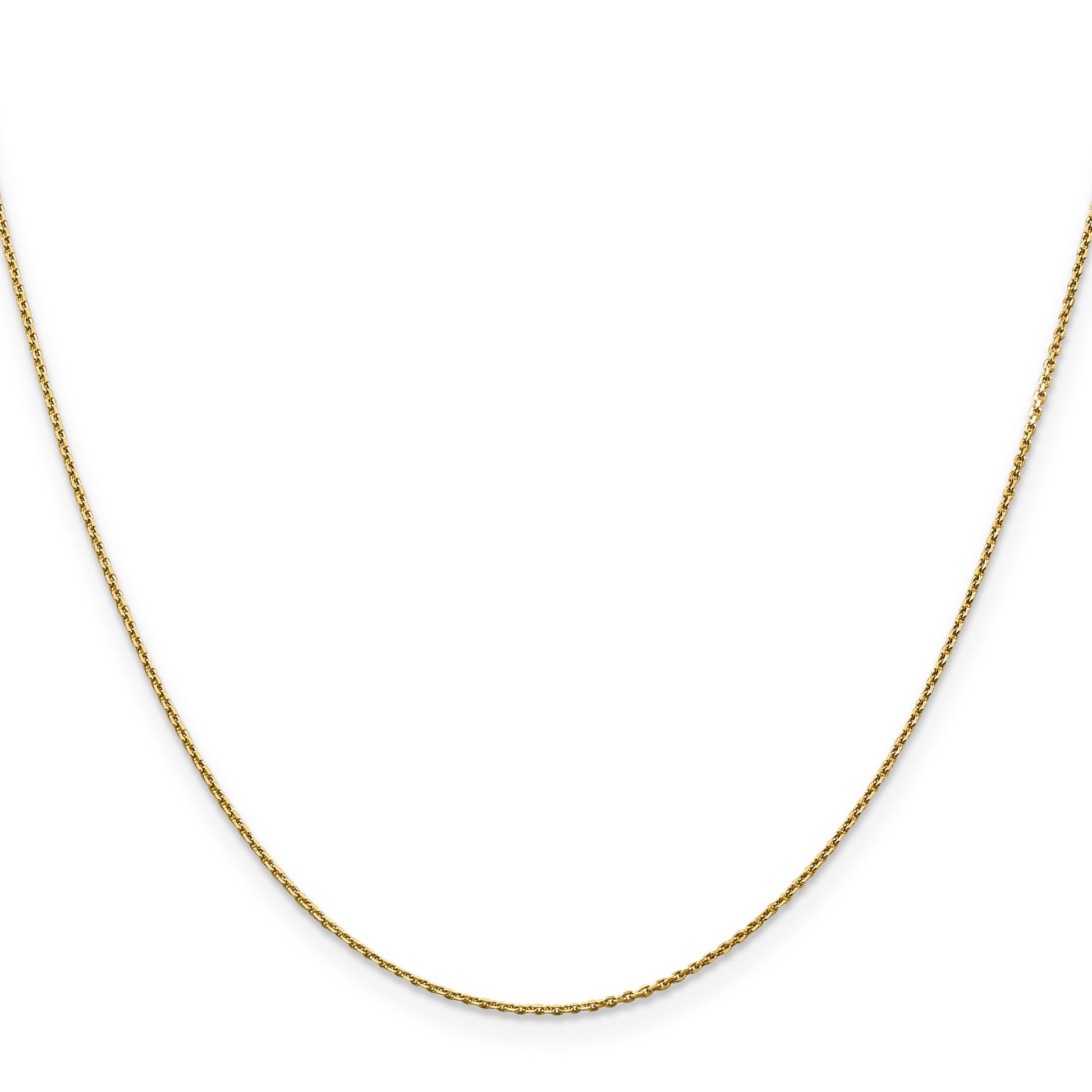 Elevate your style with the 10K Yellow Gold .9mm D/C Round Open Link Cable Chain. This polished necklace, measuring a sleek 18 inches, rests gracefully against your neckline, adding a hint of golden warmth. Crafted with a sturdy lobster clasp, this solid gold piece ensures lasting security. The chain's diamond-cut texture reflects light beautifully, complementing your every move. With its meticulously casted artistry and machine made precision, this cable chain is a shining example of elegance. Fitting for any occasion, this necklace will become a timeless piece in your jewelry collection.