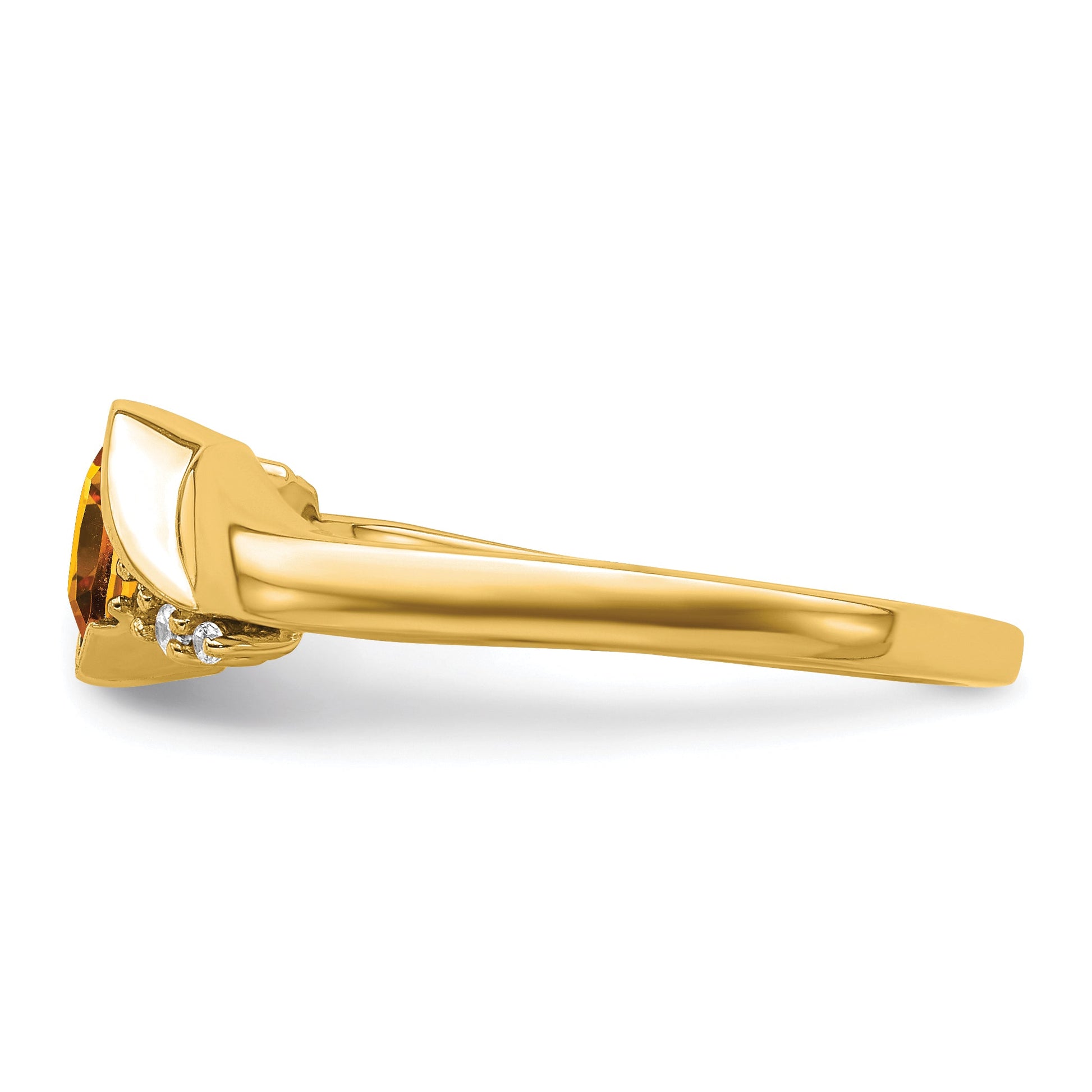 Discover a classic treasure with the 10K Yellow Gold Citrine and Diamond Ring. Showcasing a stunning, natural cushion-cut citrine surrounded by sparkling round diamonds, this ring exudes elegance and charm. Its polished finish and tapered band promise a comfortable and refined fit. With a substantial citrine centerpiece weighing 0.5 carats and enhanced by accent diamonds, this piece stands as a testament to meticulous craftsmanship. Ideal for sizes 6 to 8, it offers a solid and seamless look. Embrace timeless style with the 10K Yellow Gold Citrine and Diamond Ring, a perfect keepsake for any jewelry lover.