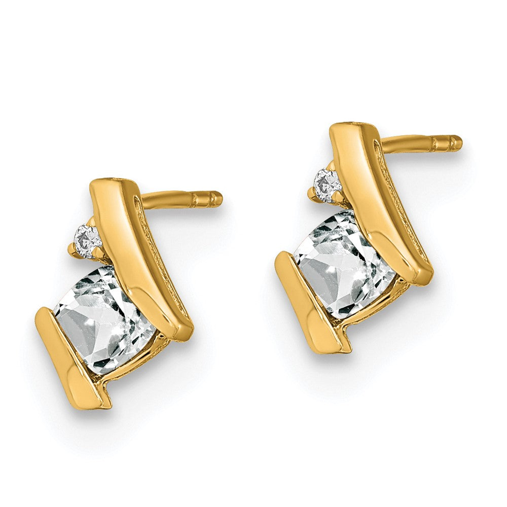 Meet a blend of elegance and sparkle with the 10K Yellow Gold Cushion White Topaz and Diamond Earrings. These pieces shine with genuine cushion-cut white topaz and round diamonds, each carefully set to catch the light. Crafted from radiant 10K yellow gold, these earrings promise lasting beauty and charm. Their post and push-back closure ensures a snug fit, making them suitable for any occasion. Whether you're dressing up or dressing down, these earrings add a touch of grace and sophistication to your ensemble. Add the 10K Yellow Gold Cushion White Topaz and Diamond Earrings to your collection today.