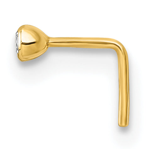 The 10K Yellow Gold Polished 23 Gauge 2.00mm Bezel-Set White Round CZ Nose Stud offers a blend of classic style and modern elegance. Crafted from pure 10K yellow gold, it features a polished finish that catches the light beautifully. The bezel-set white round cubic zirconia adds a touch of sparkle, making it a standout piece. Designed as nostril jewelry, the stud fits comfortably and securely. It suits any outfit effortlessly while enhancing your look with a subtle gleam. Choose the 10K Yellow Gold Polished CZ Nose Stud for both everyday wear and special occasions.