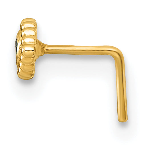 Discover the allure of the 10K Yellow Gold Polished 23 Gauge Blue Cz Evil Eye Nose Stud. This exquisite piece of nostril jewelry shines in polished 10K yellow gold, adding a touch of elegance to your style. The charming evil eye design features a captivating blue cubic zirconia, perfect for warding off bad vibes. Measuring 3.9 mm in length and 6.4 mm in width, it offers a snug fit with a subtle gleam. Unisex in design, this nose stud is sold individually, blending fashion with protection effortlessly. Own the 10K Yellow Gold Polished Blue Cz Evil Eye Nose Stud for a chic and meaningful addition to your collection.