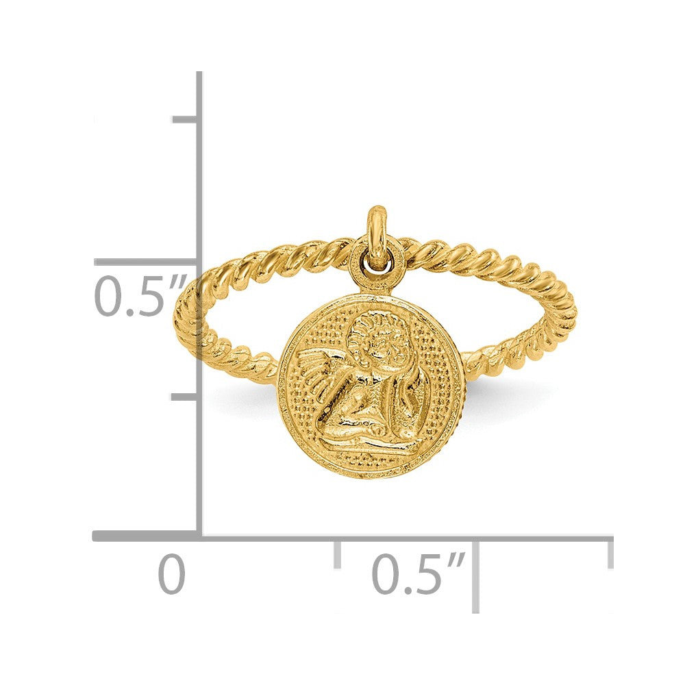 The 10K Yellow Gold Polished Angel Dangle Charm Child's Ring is a charming choice for those little fingers. Crafted with pure 10K gold, this ring offers a polished finish that beautifully catches the light. The band is a delicate 1 mm in width, catering specifically to children's hands, with adjustable sizing from 3.75 to 5.75 in increments of 0.25. The angel charm adds a playful, themed touch that is perfect for any occasion. The 10K Yellow Gold Polished Angel Dangle Charm Child's Ring combines elegance and durability, ensuring it remains a cherished keepsake.