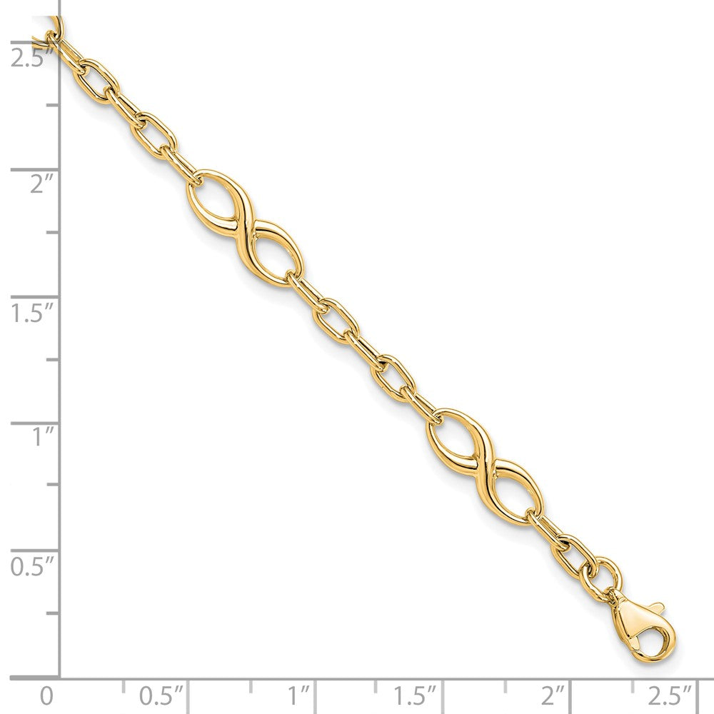 The 10K Yellow Gold Polished Link Bracelet is a stylish piece that adds shine to any look. Crafted from pure 10K gold, it offers a polished finish for a sleek, sophisticated feel. This bracelet measures 7.5 inches long with a 5 mm width, making it perfect for daily wear or special occasions. The sturdy lobster clasp ensures a secure fit, while the link design adds a modern touch. Designed for women, the 10K Yellow Gold Polished Link Bracelet is a versatile jewelry piece that promises lasting quality with a lifetime guarantee.