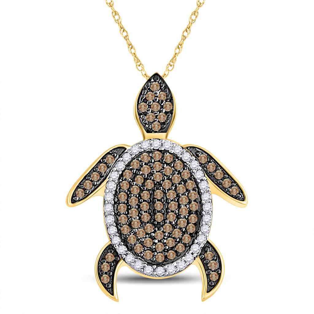 10k Yellow Gold Round Brown Diamond Sea Turtle Animal Pendant 3/8 Cttw